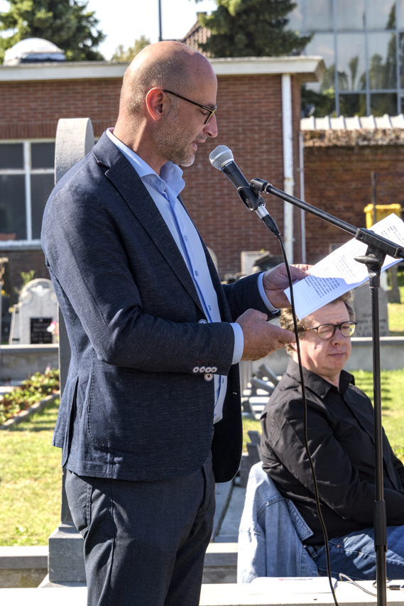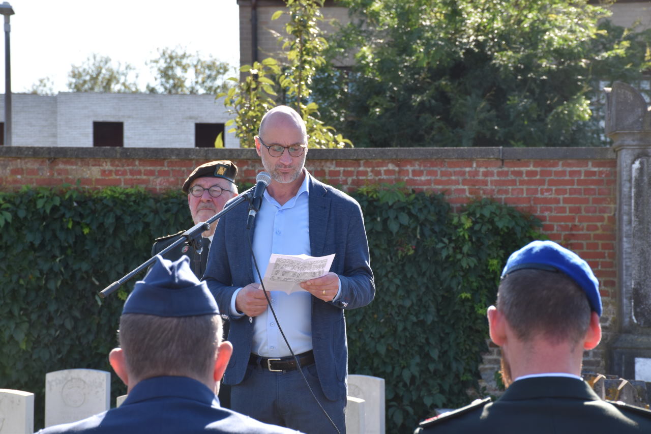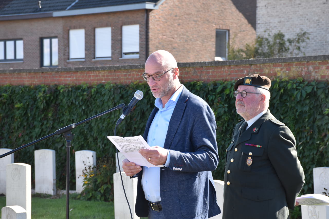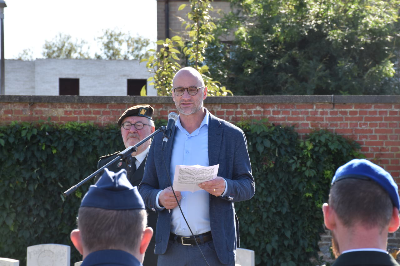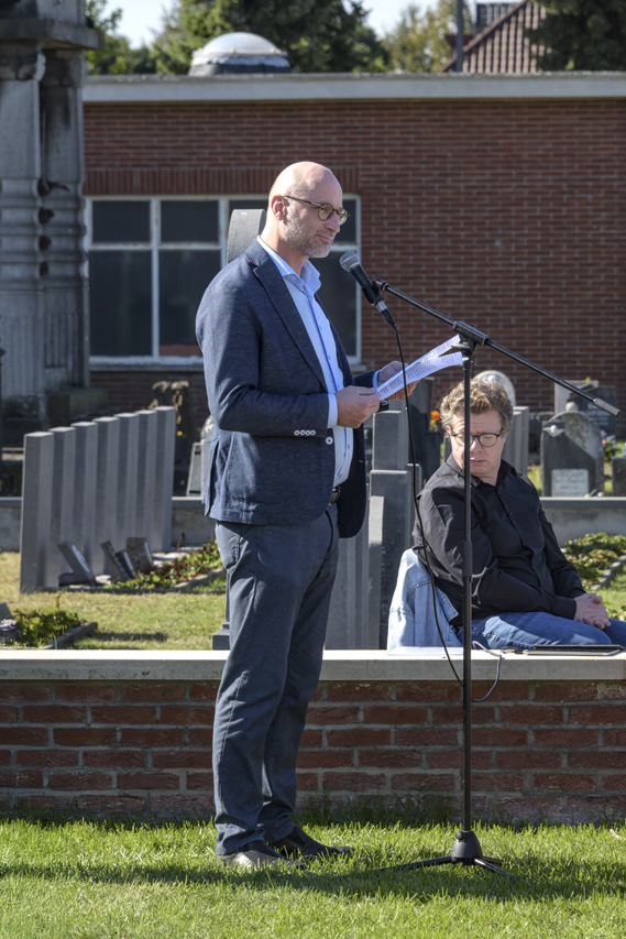 Schepen Stijn Adriaensens sprak de aanwezigen toe en verwees ook naar de huidige conflicten over de hele wereld.