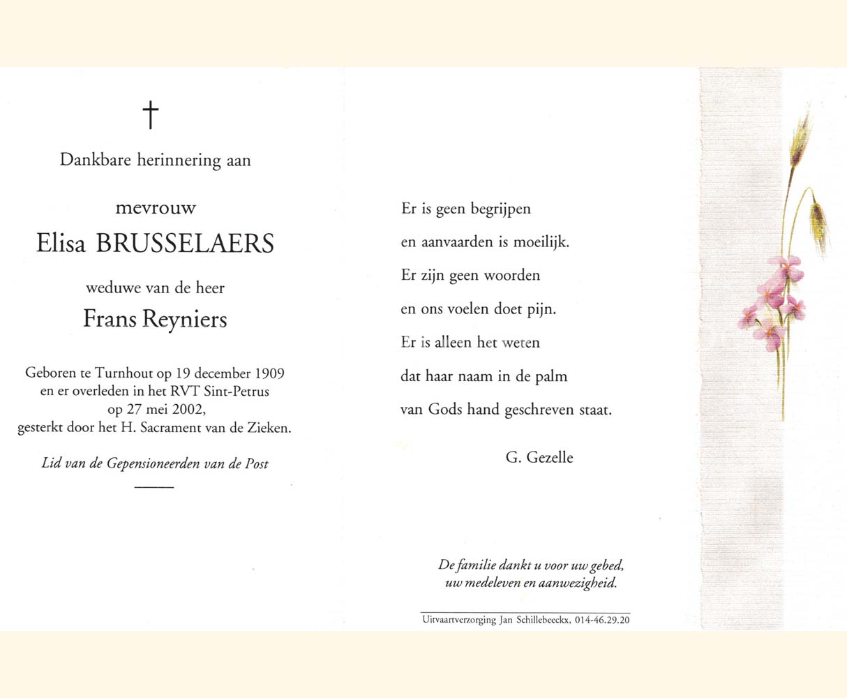 Wij willen met deze website niemand kwetsen of beledigen, het is enkel de bedoeling om genealogische informatie weer te geven.  Daarenboven hechten we veel belang aan ieders privacy.  Heeft u bezwaar tegen de vermelding van een bidprentje van één van uw familieleden die de afgelopen 50 jaar overleden zijn, stuur dan een mailtje naar info@smartsitesolutions.be.