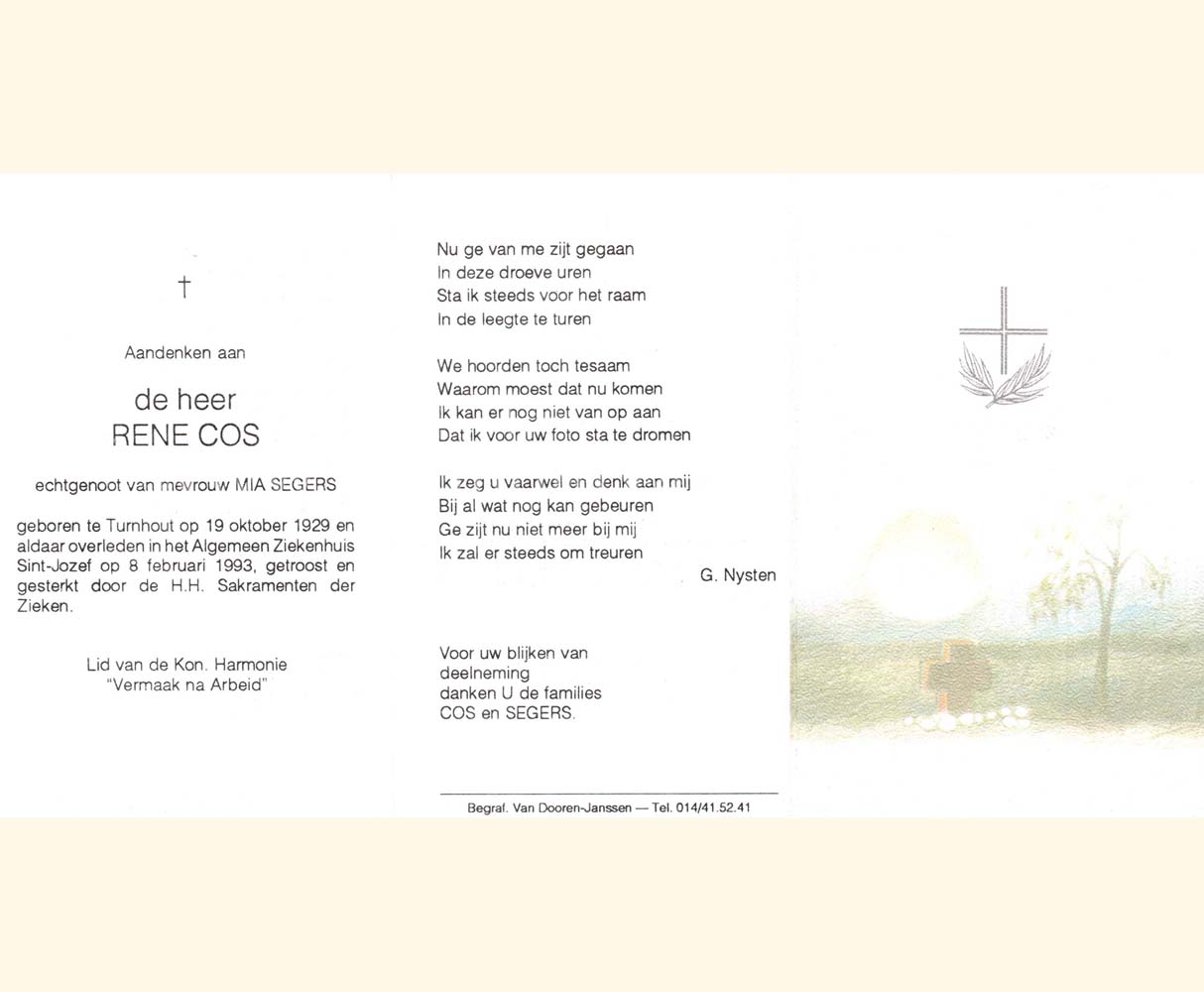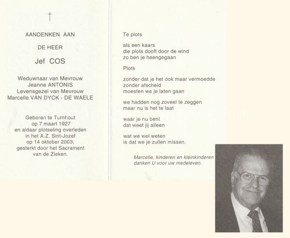 Wij willen met deze website niemand kwetsen of beledigen, het is enkel de bedoeling om genealogische informatie weer te geven.  Daarenboven hechten we veel belang aan ieders privacy.  Heeft u bezwaar tegen de vermelding van een bidprentje van één van uw familieleden die de afgelopen 50 jaar overleden zijn, stuur dan een mailtje naar info@smartsitesolutions.be.