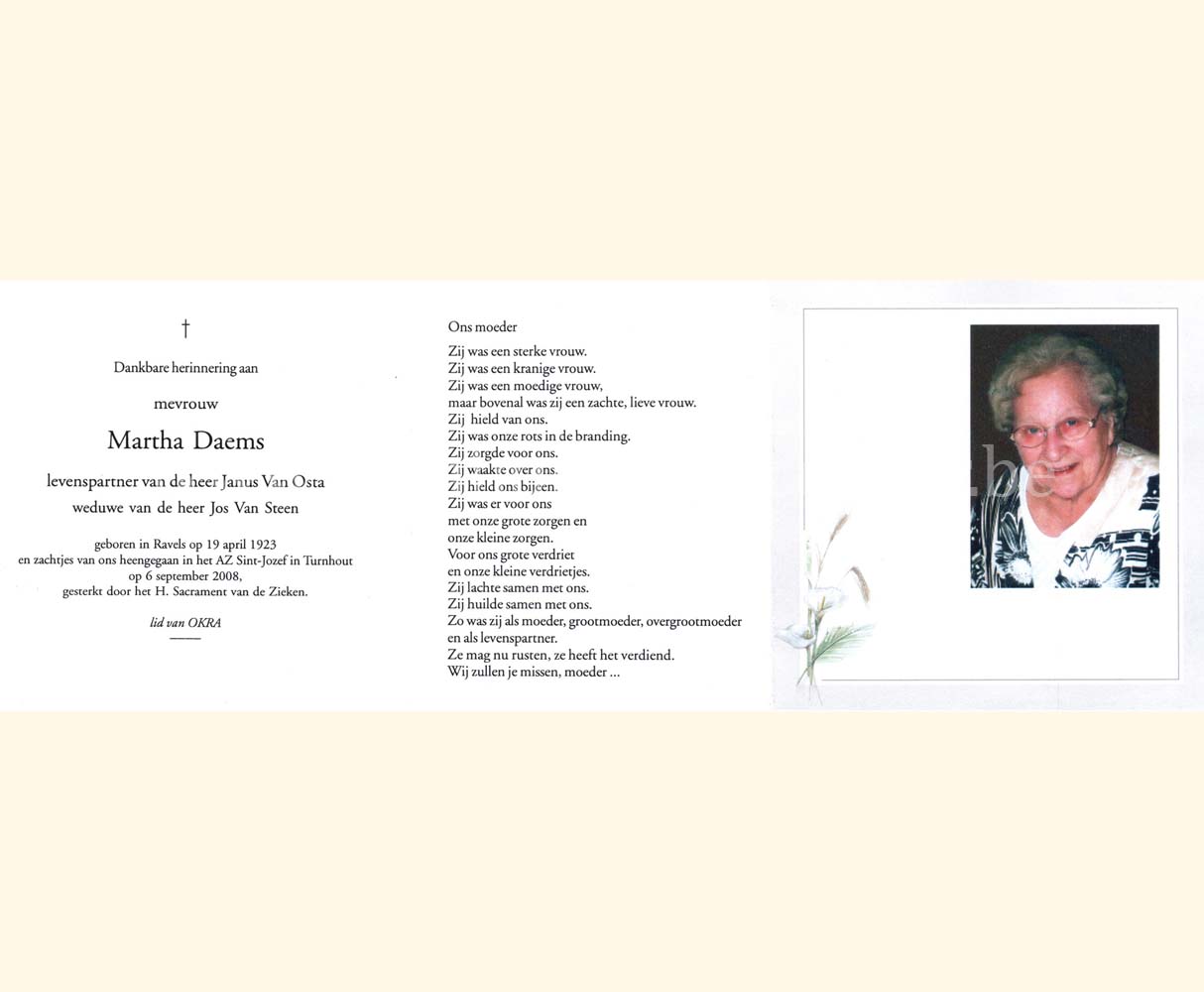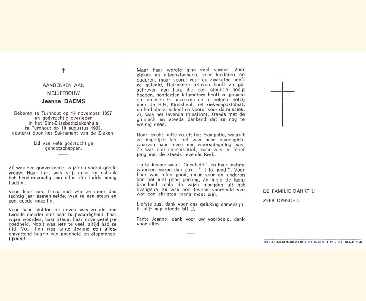 Wij willen met deze website niemand kwetsen of beledigen, het is enkel de bedoeling om genealogische informatie weer te geven.  Daarenboven hechten we veel belang aan ieders privacy.  Heeft u bezwaar tegen de vermelding van een bidprentje van één van uw familieleden die de afgelopen 50 jaar overleden zijn, stuur dan een mailtje naar info@smartsitesolutions.be.