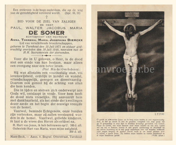Een bidprentje van Drukkerij Wellens-Weckx uit 1946