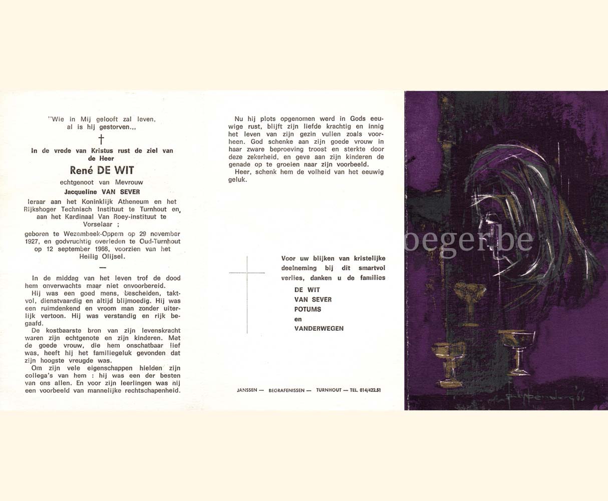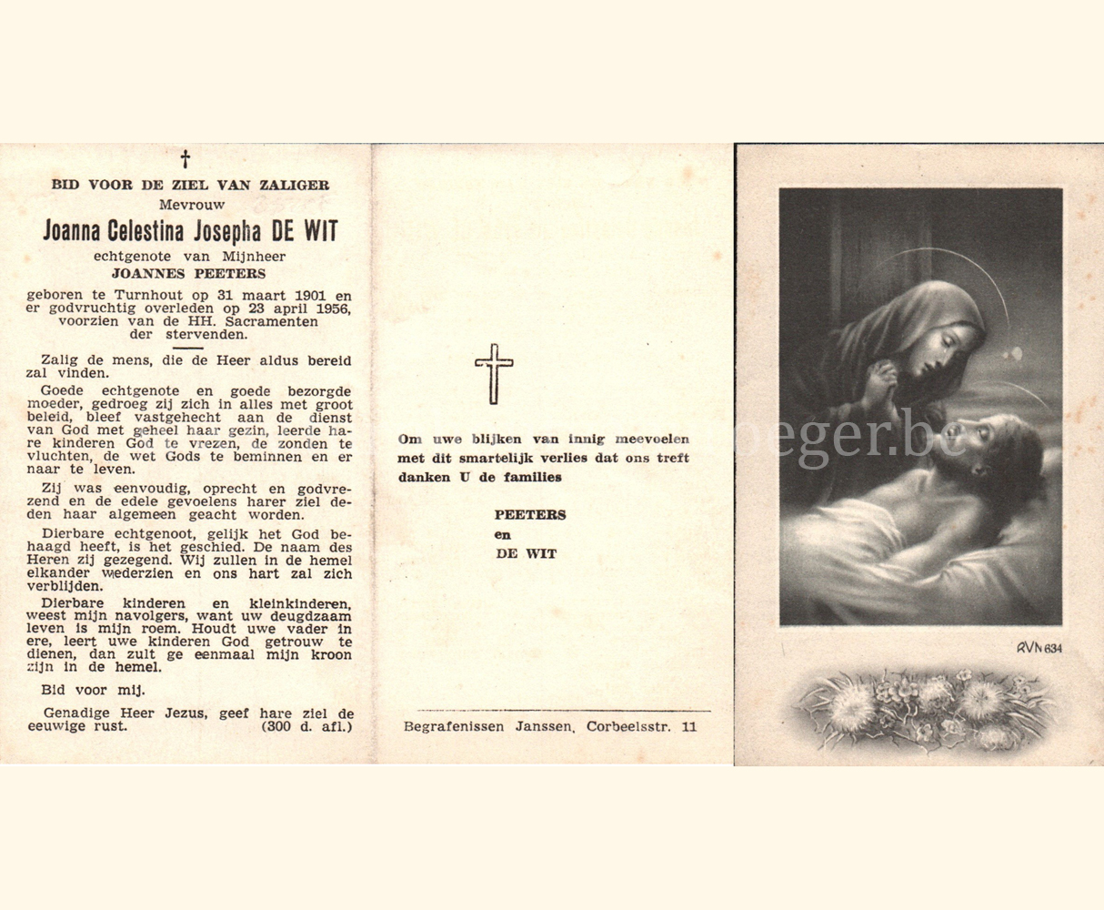 Wij willen met deze website niemand kwetsen of beledigen, het is enkel de bedoeling om genealogische informatie weer te geven.  Daarenboven hechten we veel belang aan ieders privacy.  Heeft u bezwaar tegen de vermelding van een bidprentje van één van uw familieleden die de afgelopen 50 jaar overleden zijn, stuur dan een mailtje naar info@smartsitesolutions.be.