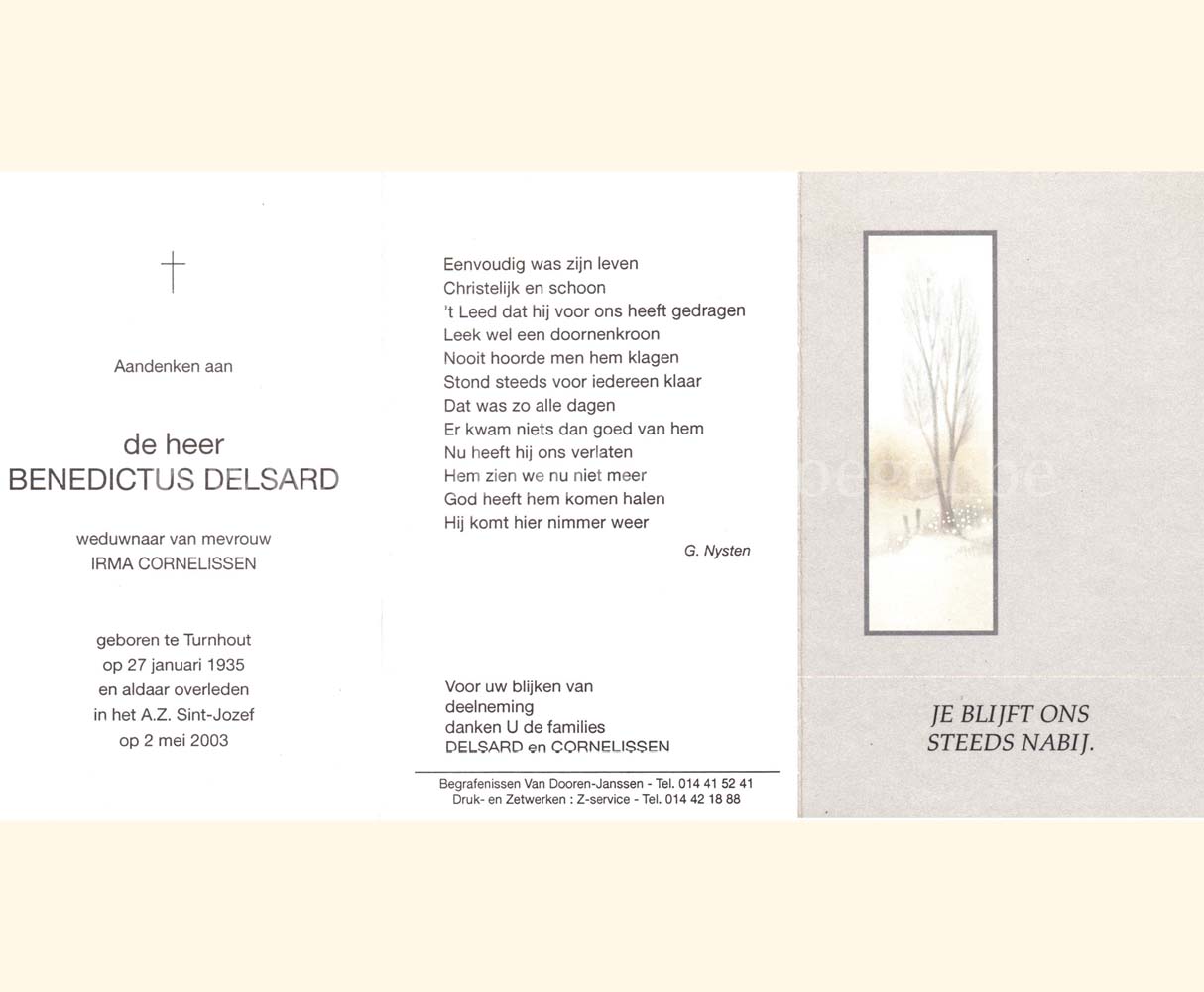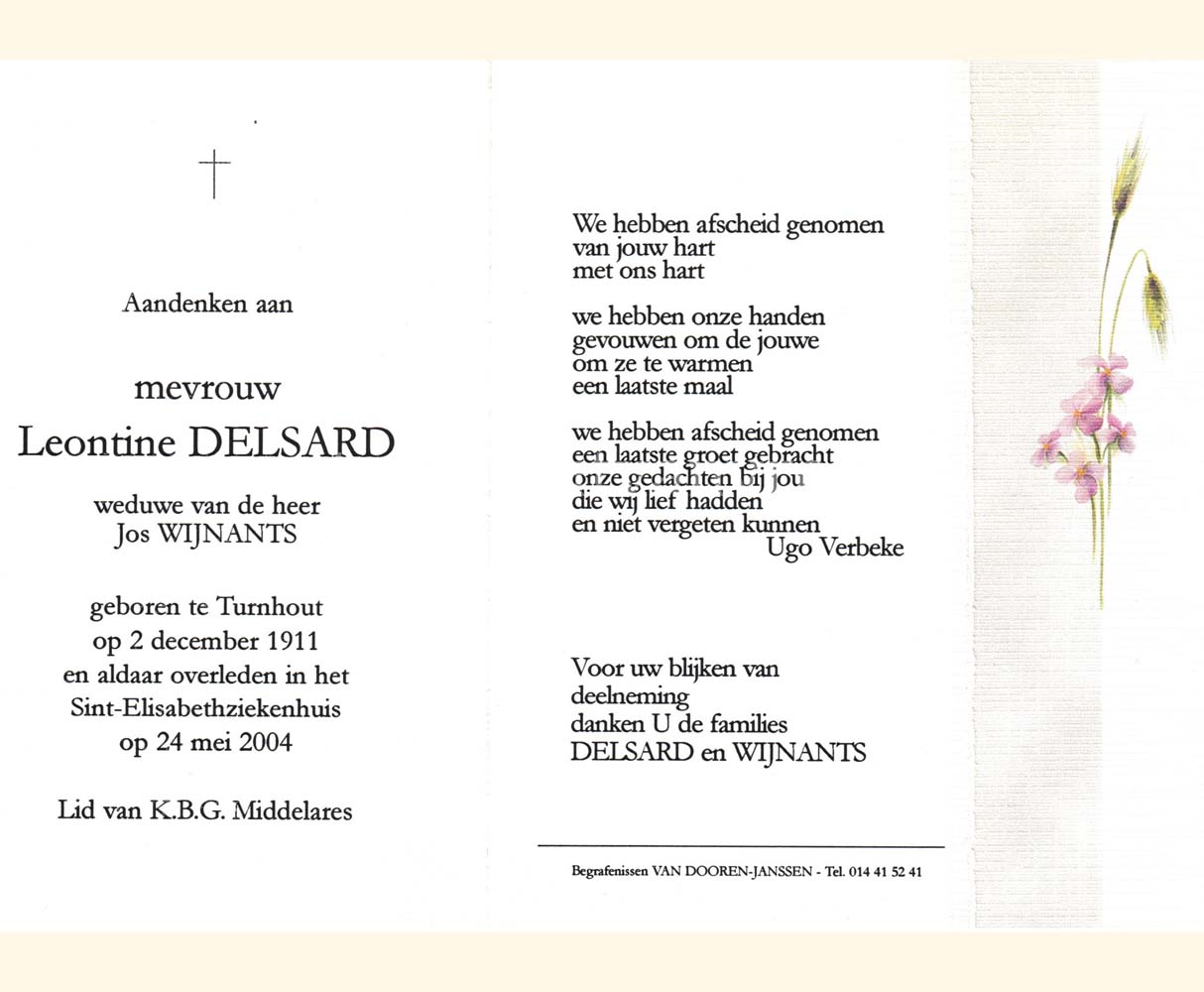 Wij willen met deze website niemand kwetsen of beledigen, het is enkel de bedoeling om genealogische informatie weer te geven.  Daarenboven hechten we veel belang aan ieders privacy.  Heeft u bezwaar tegen de vermelding van een bidprentje van één van uw familieleden die de afgelopen 50 jaar overleden zijn, stuur dan een mailtje naar info@smartsitesolutions.be.