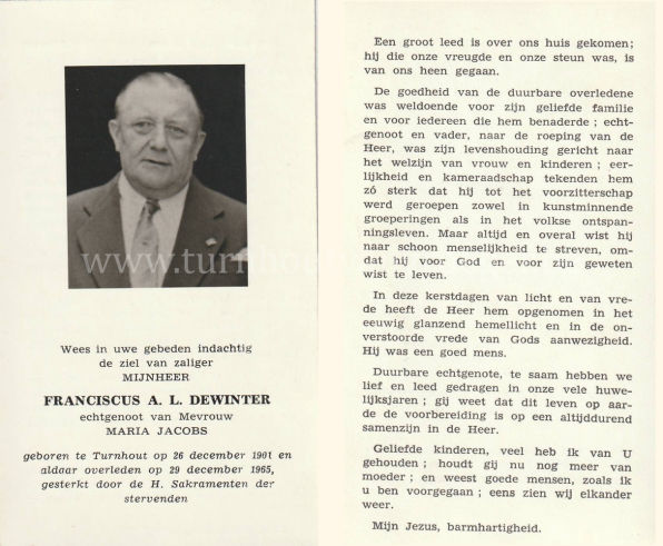 Wij willen met deze website niemand kwetsen of beledigen, het is enkel de bedoeling om genealogische informatie weer te geven.  Daarenboven hechten we veel belang aan ieders privacy.  Heeft u bezwaar tegen de vermelding van een bidprentje van één van uw familieleden die de afgelopen 50 jaar overleden zijn, stuur dan een mailtje naar info@smartsitesolutions.be.