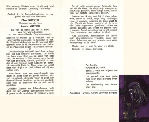 Wij willen met deze website niemand kwetsen of beledigen, het is enkel de bedoeling om genealogische informatie weer te geven.  Daarenboven hechten we veel belang aan ieders privacy.  Heeft u bezwaar tegen de vermelding van een bidprentje van één van uw familieleden die de afgelopen 50 jaar overleden zijn, stuur dan een mailtje naar info@smartsitesolutions.be.