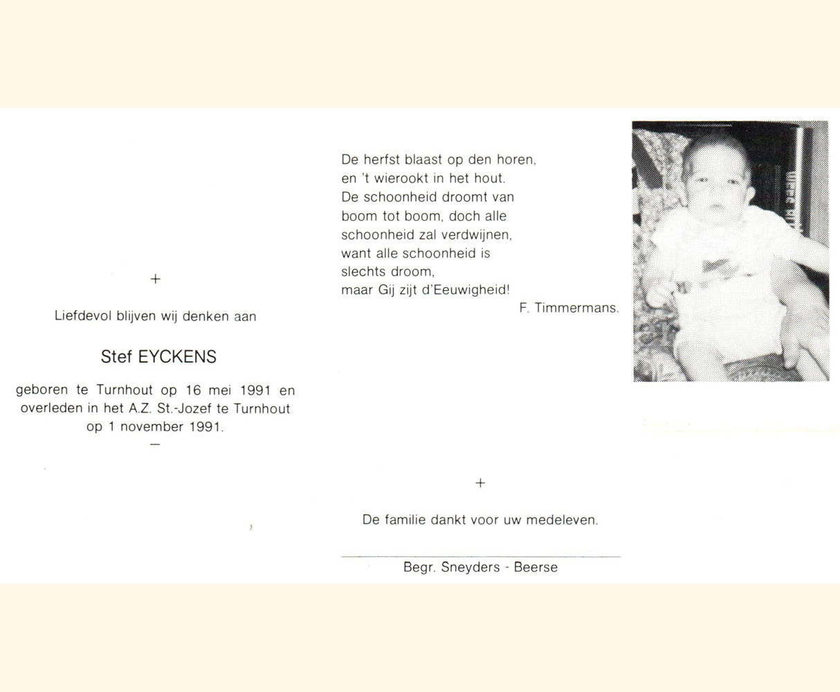 Wij willen met deze website niemand kwetsen of beledigen, het is enkel de bedoeling om genealogische informatie weer te geven.  Daarenboven hechten we veel belang aan ieders privacy.  Heeft u bezwaar tegen de vermelding van een bidprentje van één van uw familieleden die de afgelopen 50 jaar overleden zijn, stuur dan een mailtje naar info@smartsitesolutions.be.