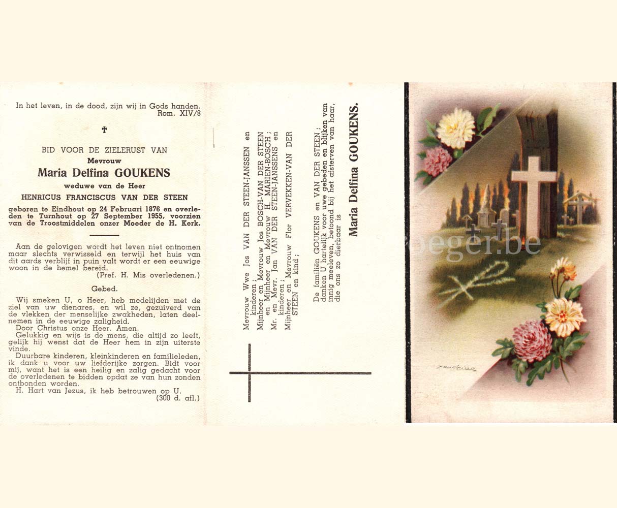 Wij willen met deze website niemand kwetsen of beledigen, het is enkel de bedoeling om genealogische informatie weer te geven.  Daarenboven hechten we veel belang aan ieders privacy.  Heeft u bezwaar tegen de vermelding van een bidprentje van één van uw familieleden die de afgelopen 50 jaar overleden zijn, stuur dan een mailtje naar info@smartsitesolutions.be.