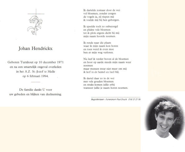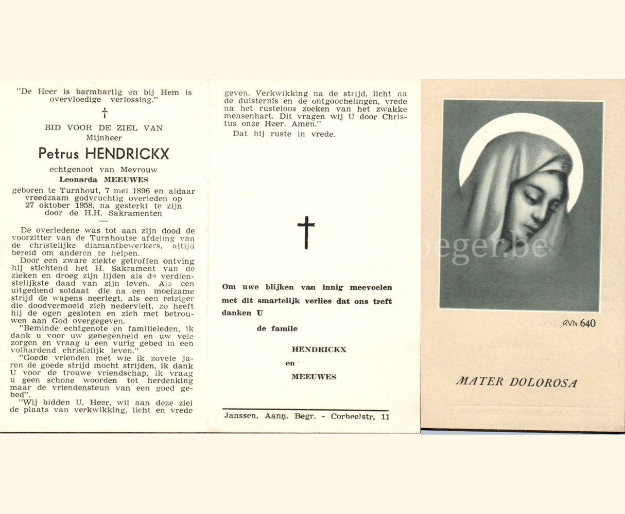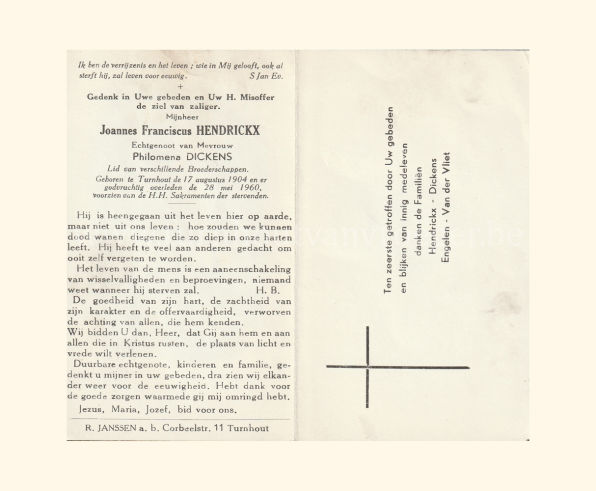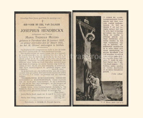 Opnieuw een bidprentje van Splichal-Roosen uit Turnhout, net zoals vorige week uit 1863 maar dit keer van een telg van de familie Hendrickx: