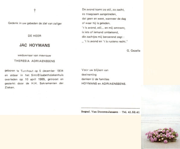 Wij willen met deze website niemand kwetsen of beledigen, het is enkel de bedoeling om genealogische informatie weer te geven.  Daarenboven hechten we veel belang aan ieders privacy.  Heeft u bezwaar tegen de vermelding van een bidprentje van één van uw familieleden die de afgelopen 50 jaar overleden zijn, stuur dan een mailtje naar info@smartsitesolutions.be.