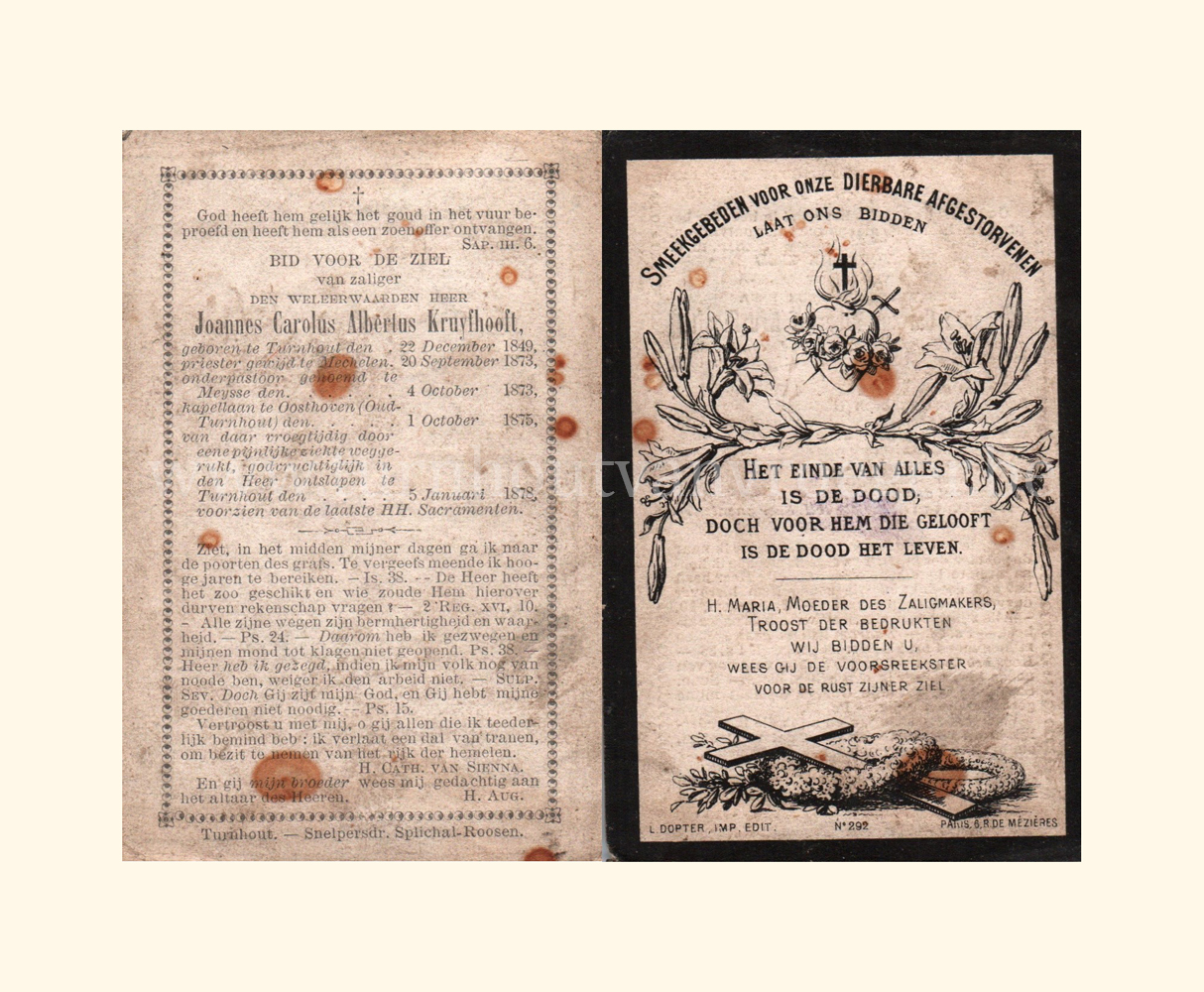 E.H. Joannes Carolus Albertus Kruyfhooft: Turnhout, 22/12/1849 – Turnhout, 05/01/1878