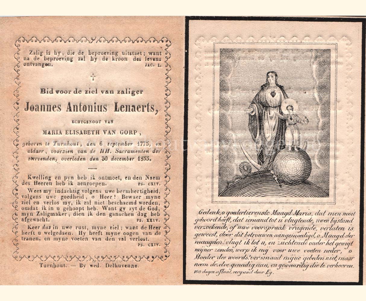 Joannes Antonius Lenaerts (Turnhout, 06/09/1775 – Turnhout, 30/12/1855)