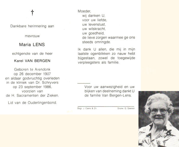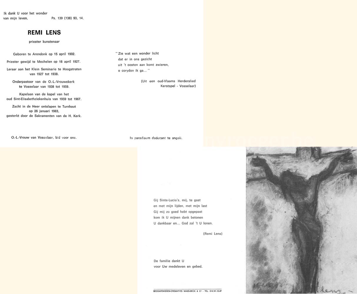 Wij willen met deze website niemand kwetsen of beledigen, het is enkel de bedoeling om genealogische informatie weer te geven.  Daarenboven hechten we veel belang aan ieders privacy.  Heeft u bezwaar tegen de vermelding van een bidprentje van één van uw familieleden die de afgelopen 50 jaar overleden zijn, stuur dan een mailtje naar info@smartsitesolutions.be.