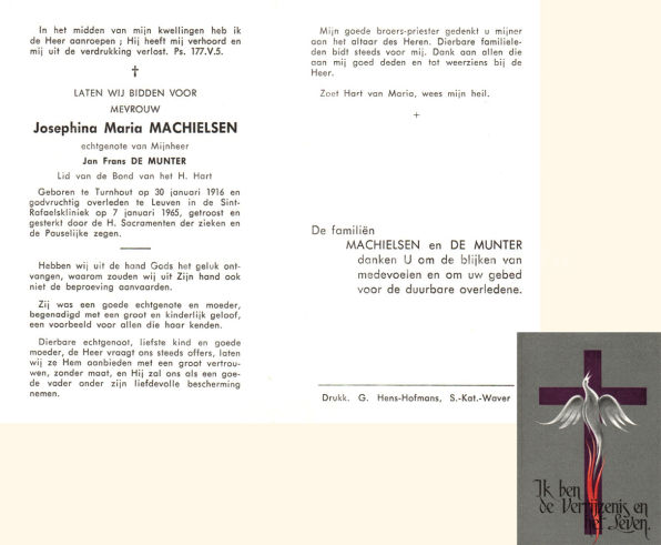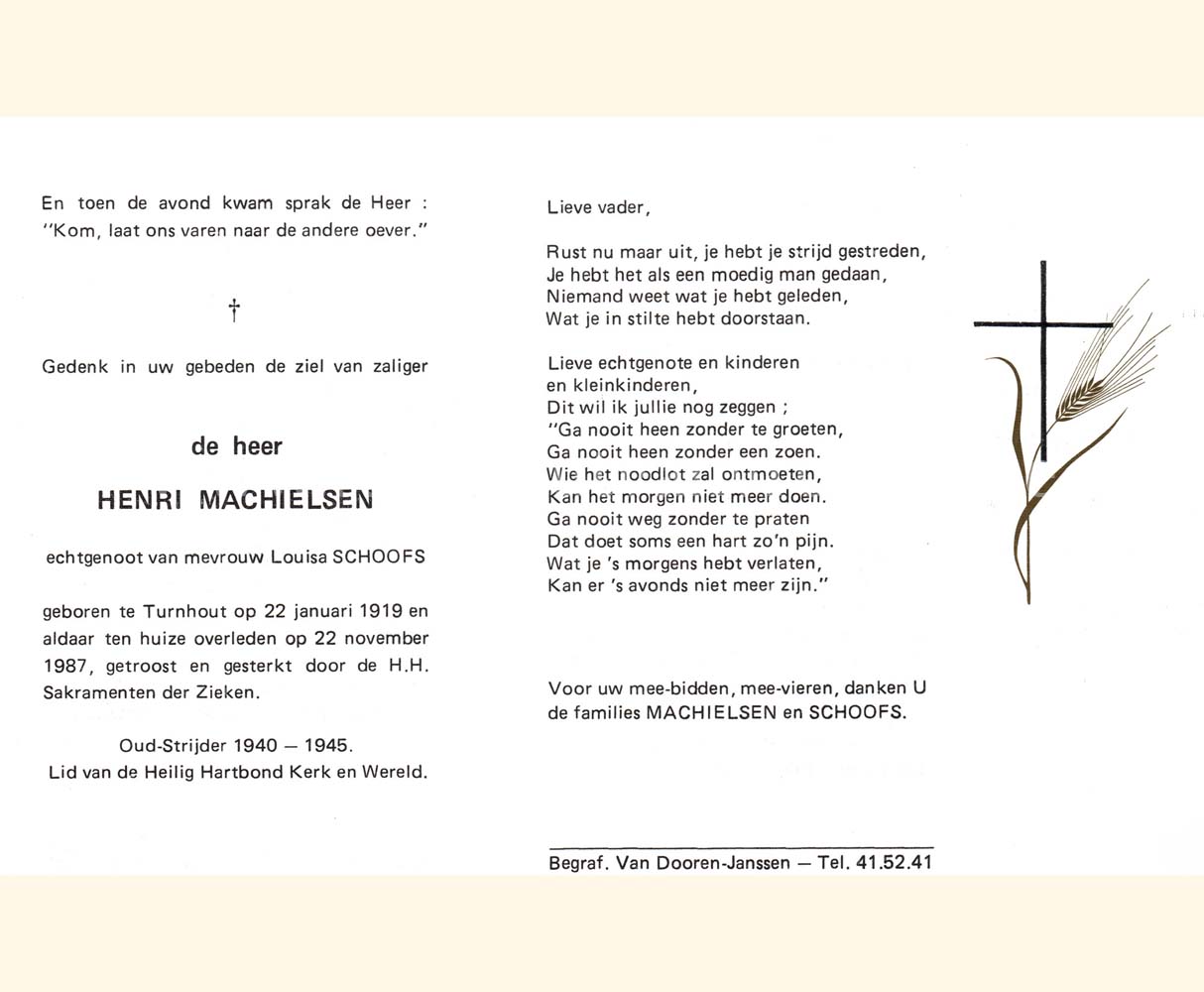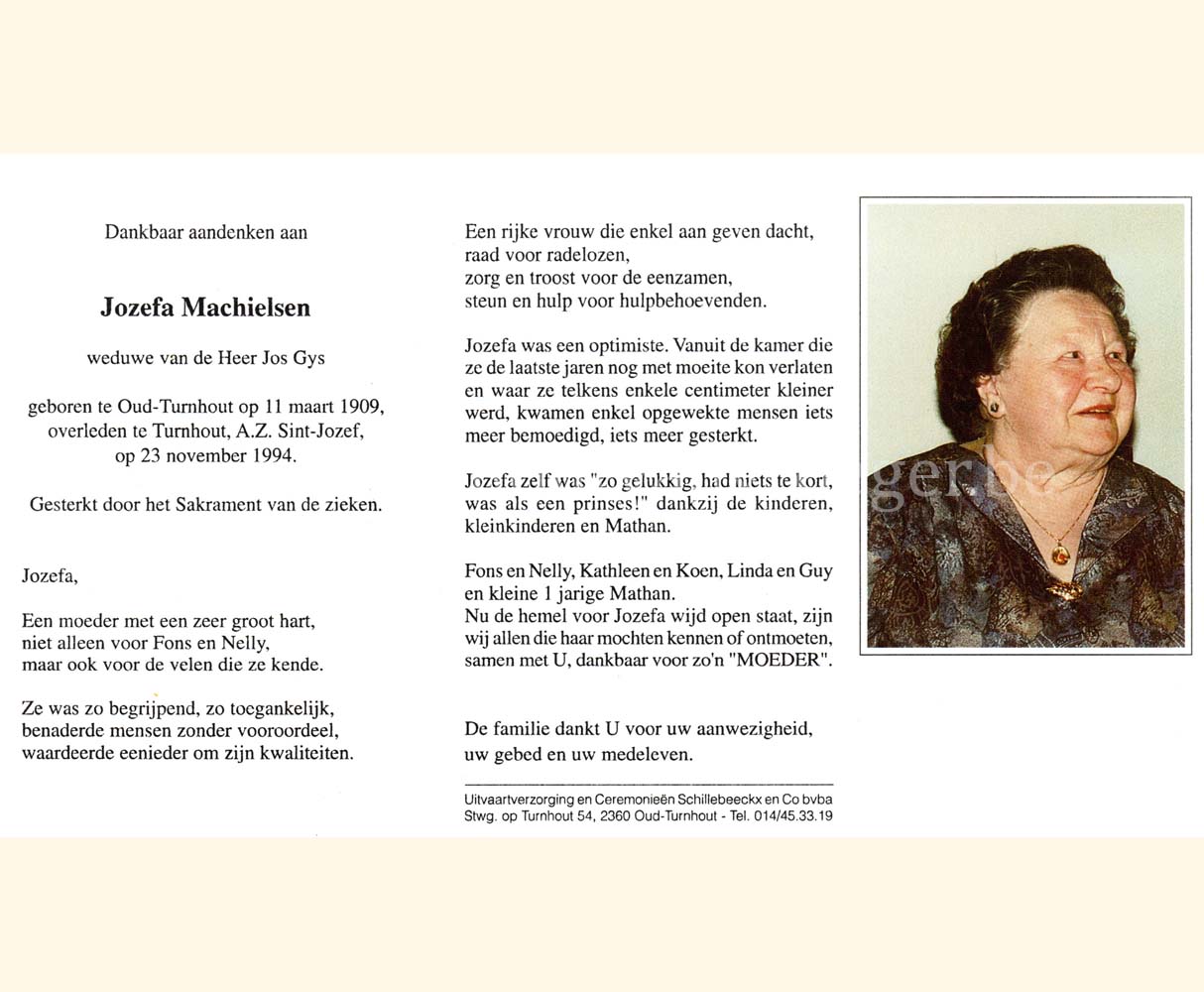 Wij willen met deze website niemand kwetsen of beledigen, het is enkel de bedoeling om genealogische informatie weer te geven. Daarenboven hechten we veel belang aan ieders privacy. Heeft u bezwaar tegen de vermelding van een bidprentje van één van uw familieleden die de afgelopen 50 jaar overleden zijn, stuur dan een mailtje naar info@smartsitesolutions.be.