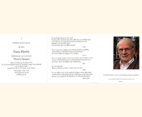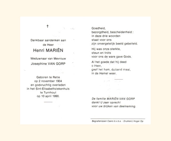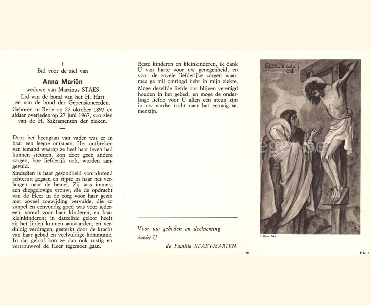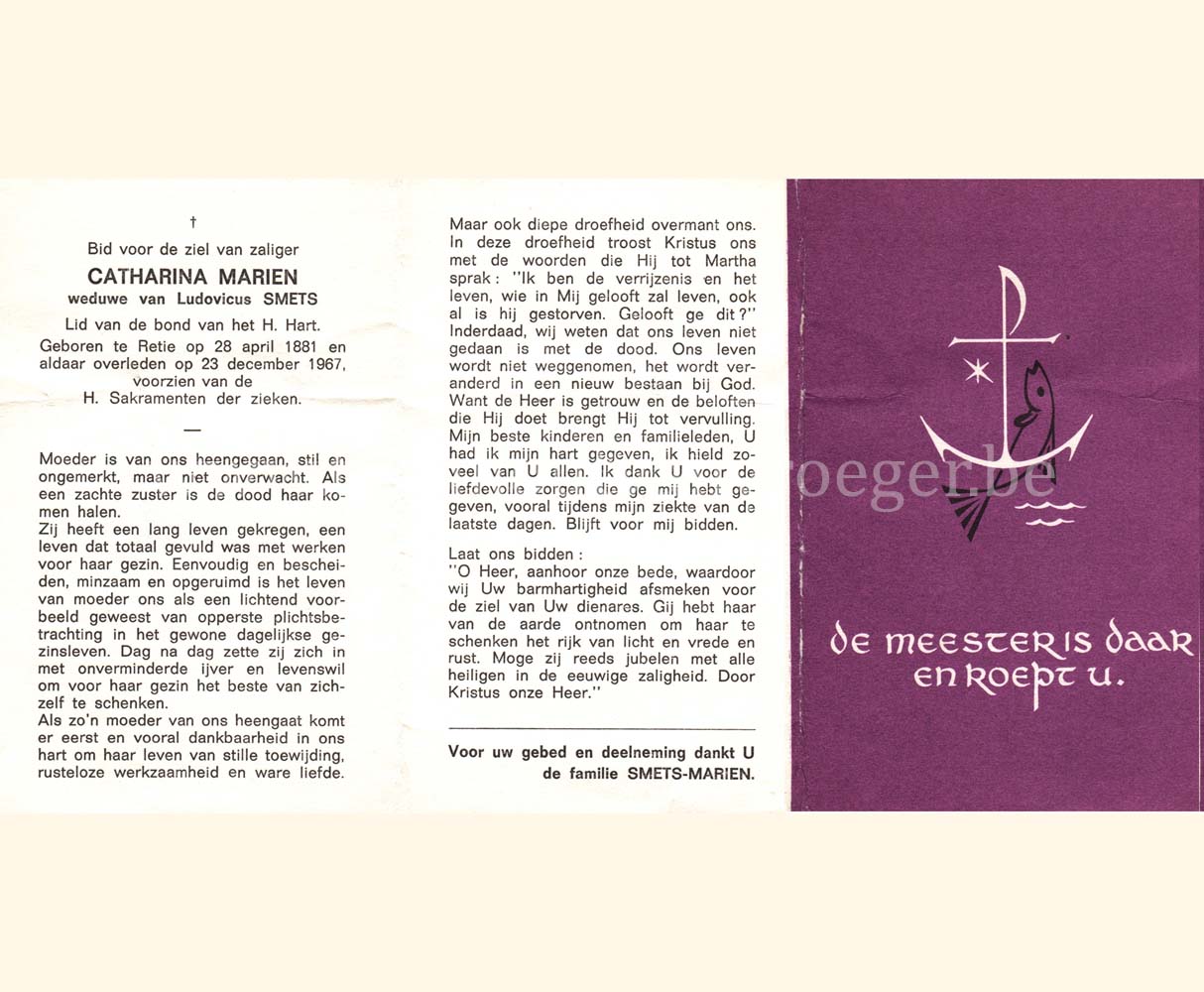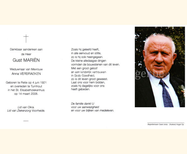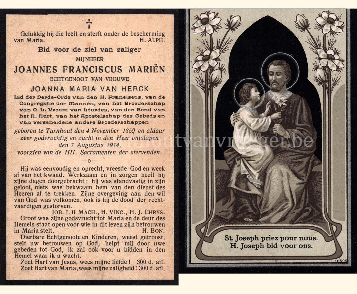 Wij willen met deze website niemand kwetsen of beledigen, het is enkel de bedoeling om genealogische informatie weer te geven.  Daarenboven hechten we veel belang aan ieders privacy.  Heeft u bezwaar tegen de vermelding van een bidprentje van één van uw familieleden die de afgelopen 50 jaar overleden zijn, stuur dan een mailtje naar info@smartsitesolutions.be.
