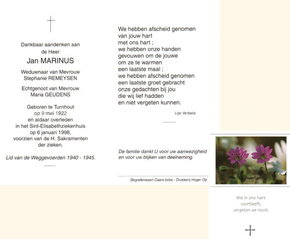 Wij willen met deze website niemand kwetsen of beledigen, het is enkel de bedoeling om genealogische informatie weer te geven. Daarenboven hechten we veel belang aan ieders privacy. Heeft u bezwaar tegen de vermelding van een bidprentje van één van uw familieleden die de afgelopen 50 jaar overleden zijn, stuur dan een mailtje naar info@smartsitesolutions.be.