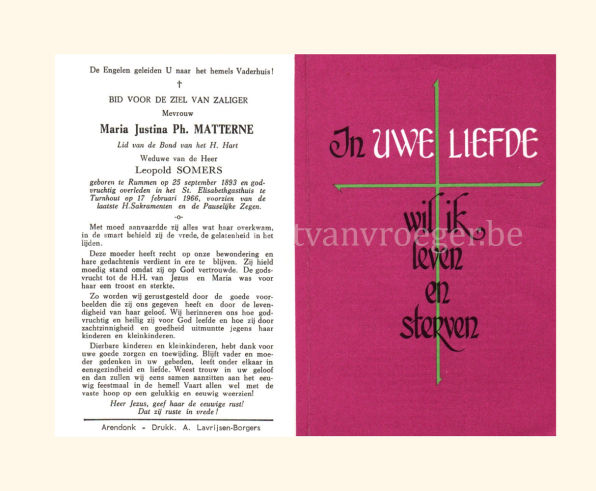 Wij willen met deze website niemand kwetsen of beledigen, het is enkel de bedoeling om genealogische informatie weer te geven.  Daarenboven hechten we veel belang aan ieders privacy.  Heeft u bezwaar tegen de vermelding van een bidprentje van één van uw familieleden die de afgelopen 50 jaar overleden zijn, stuur dan een mailtje naar info@smartsitesolutions.be.