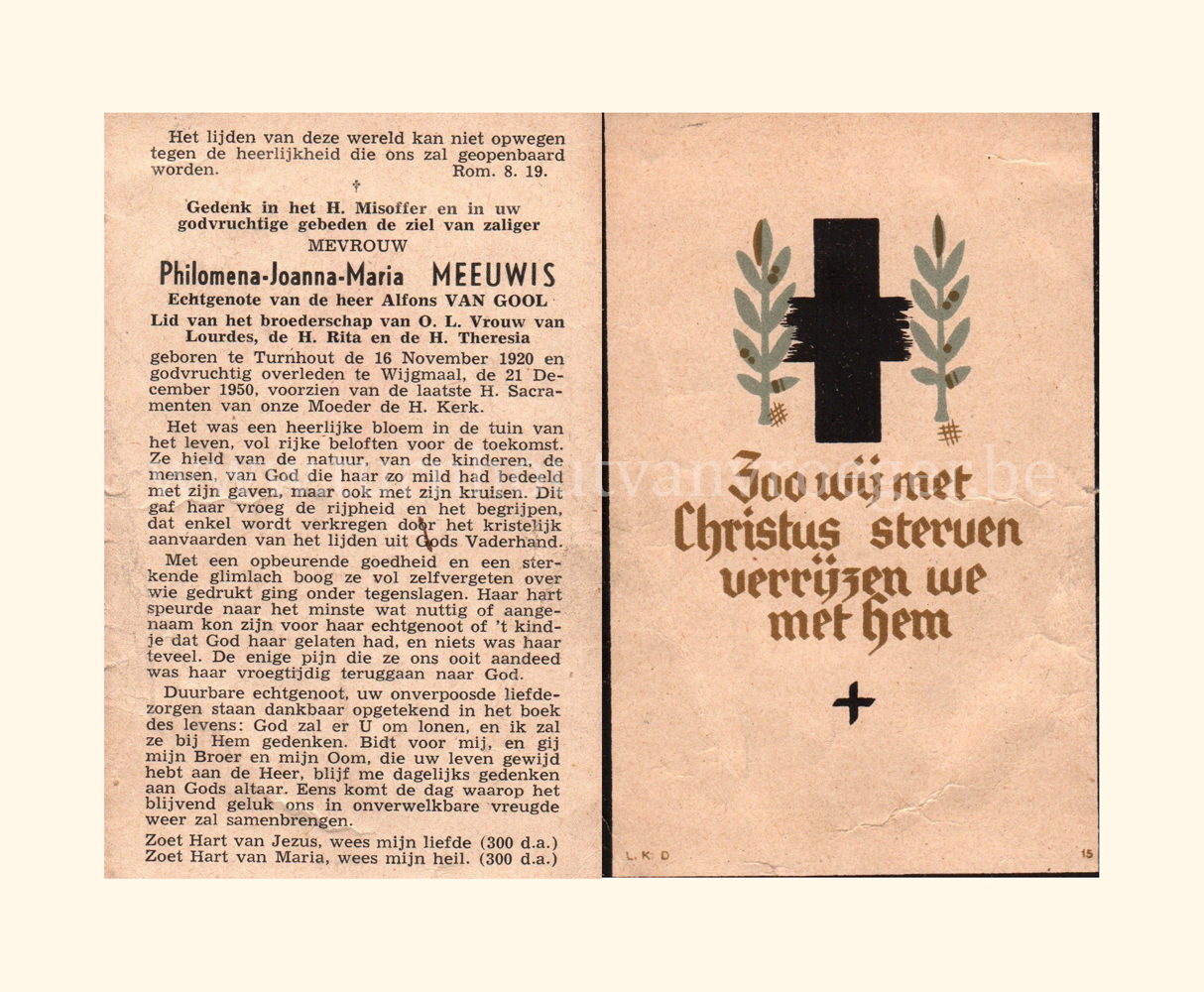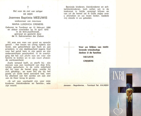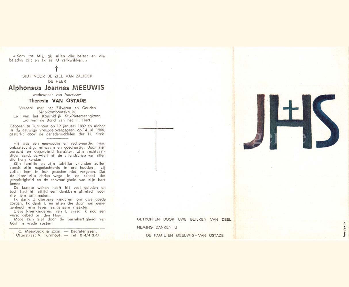 Wij willen met deze website niemand kwetsen of beledigen, het is enkel de bedoeling om genealogische informatie weer te geven.  Daarenboven hechten we veel belang aan ieders privacy.  Heeft u bezwaar tegen de vermelding van een bidprentje van één van uw familieleden die de afgelopen 50 jaar overleden zijn, stuur dan een mailtje naar info@smartsitesolutions.be.