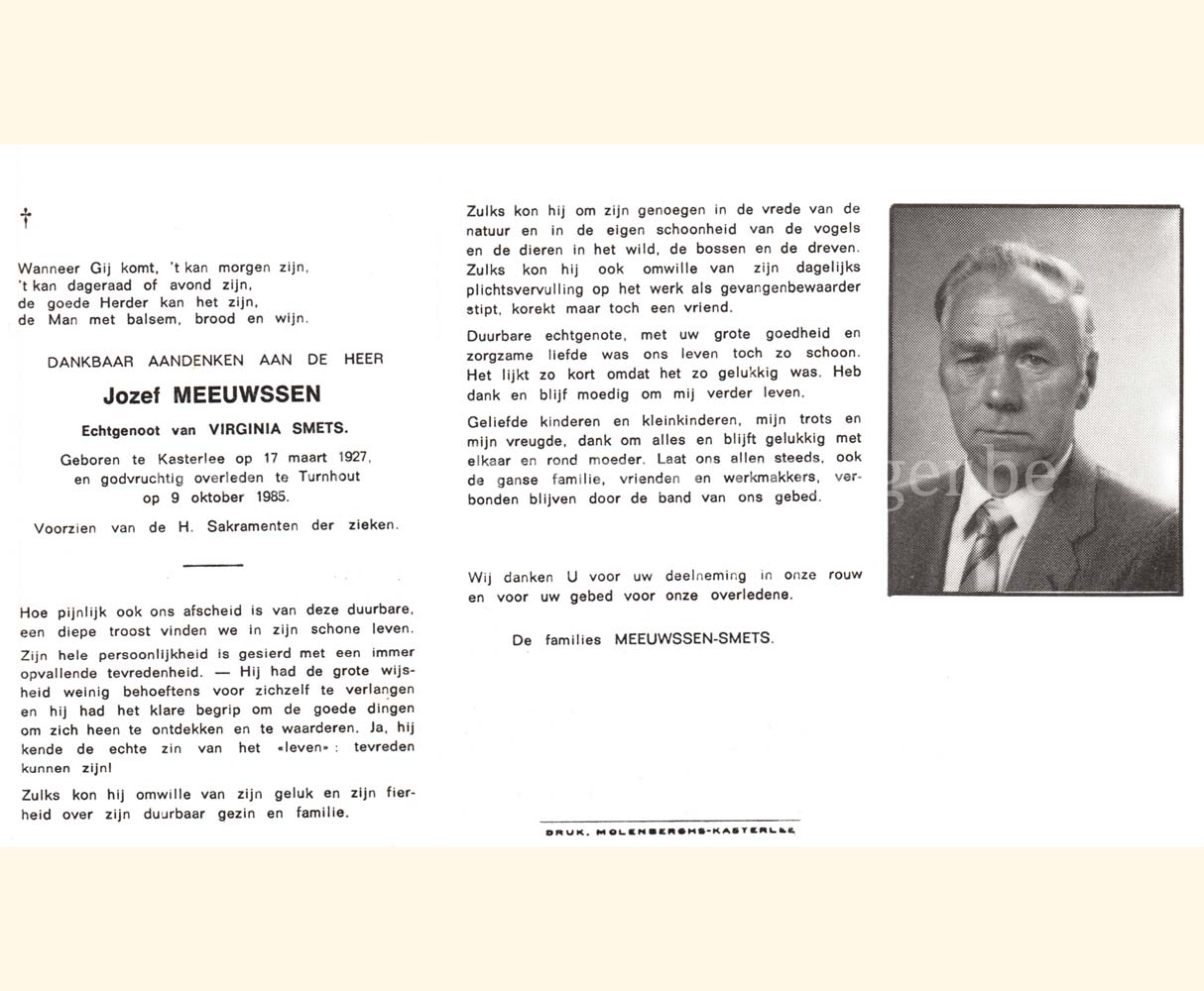 Wij willen met deze website niemand kwetsen of beledigen, het is enkel de bedoeling om genealogische informatie weer te geven.  Daarenboven hechten we veel belang aan ieders privacy.  Heeft u bezwaar tegen de vermelding van een bidprentje van één van uw familieleden die de afgelopen 50 jaar overleden zijn, stuur dan een mailtje naar info@smartsitesolutions.be.