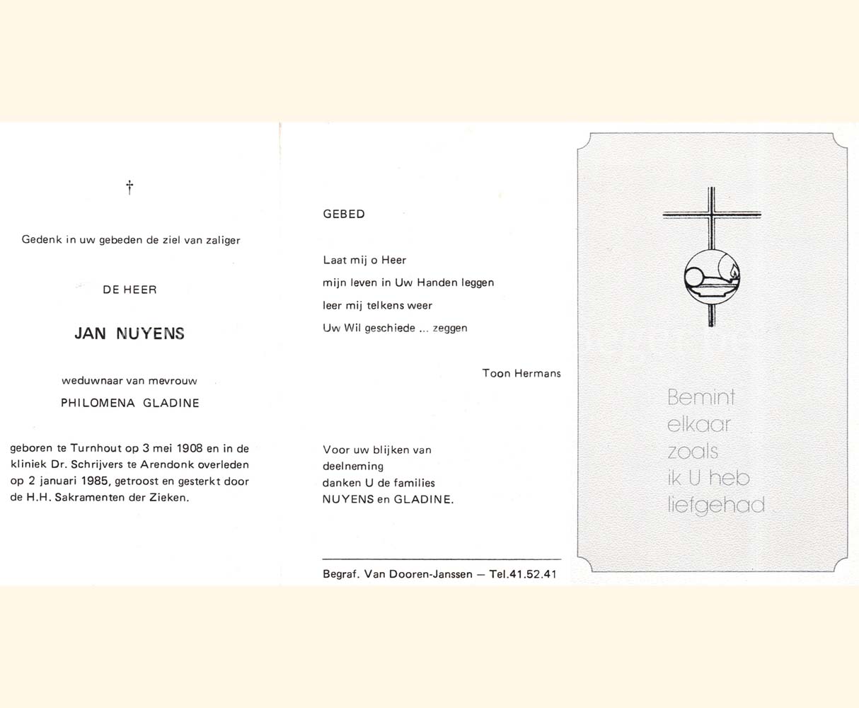 Joannes Gummarus Nuyens (Turnhout, 02/02/1895 – Hoogstade, 03/10/1918)