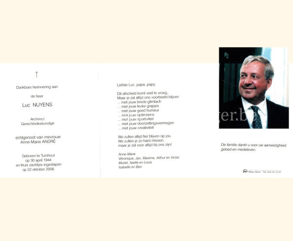 Wij willen met deze website niemand kwetsen of beledigen, het is enkel de bedoeling om genealogische informatie weer te geven. Daarenboven hechten we veel belang aan ieders privacy. Heeft u bezwaar tegen de vermelding van een bidprentje van één van uw familieleden die de afgelopen 50 jaar overleden zijn, stuur dan een mailtje naar info@smartsitesolutions.be.