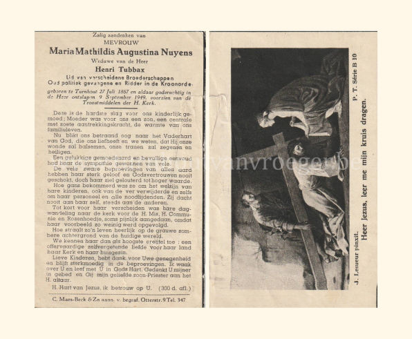 Uit het archief van Pater Joannes (Jacobus Hubertus) Rutten een heel bijzonder bidprentje van twee gesneuvelde Turnhoutse broers: