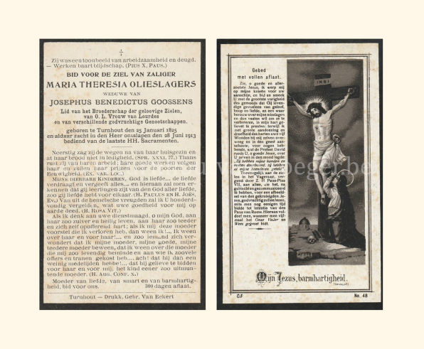 Wij willen met deze website niemand kwetsen of beledigen, het is enkel de bedoeling om genealogische informatie weer te geven.  Daarenboven hechten we veel belang aan ieders privacy.  Heeft u bezwaar tegen de vermelding van een bidprentje van één van uw familieleden die de afgelopen 50 jaar overleden zijn, stuur dan een mailtje naar info@smartsitesolutions.be.