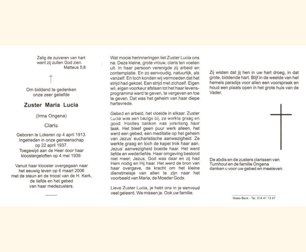 Wij willen met deze website niemand kwetsen of beledigen, het is enkel de bedoeling om genealogische informatie weer te geven.  Daarenboven hechten we veel belang aan ieders privacy.  Heeft u bezwaar tegen de vermelding van een bidprentje van één van uw familieleden die de afgelopen 50 jaar overleden zijn, stuur dan een mailtje naar info@smartsitesolutions.be.