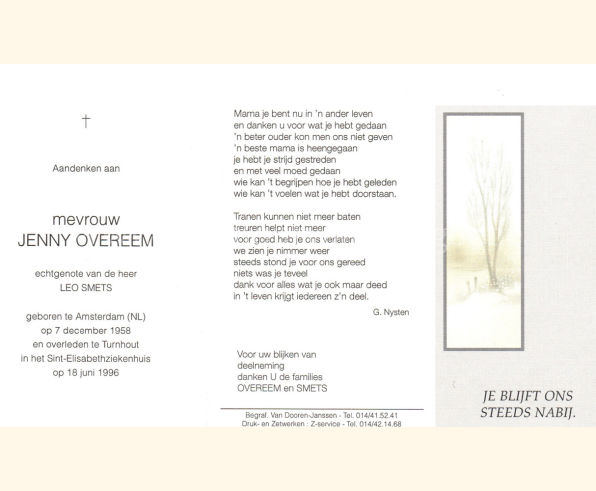 Wij willen met deze website niemand kwetsen of beledigen, het is enkel de bedoeling om genealogische informatie weer te geven.  Daarenboven hechten we veel belang aan ieders privacy.  Heeft u bezwaar tegen de vermelding van een bidprentje van één van uw familieleden die de afgelopen 50 jaar overleden zijn, stuur dan een mailtje naar info@smartsitesolutions.be.
