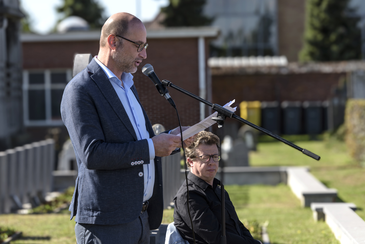 Schepen Stijn Adriaensens sprak de aanwezigen toe en verwees ook naar de huidige conflicten over de hele wereld.