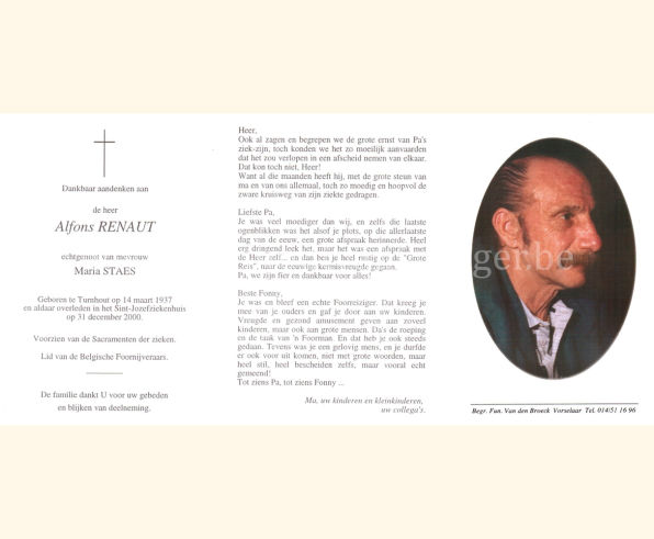 Wij willen met deze website niemand kwetsen of beledigen, het is enkel de bedoeling om genealogische informatie weer te geven.  Daarenboven hechten we veel belang aan ieders privacy.  Heeft u bezwaar tegen de vermelding van een bidprentje van één van uw familieleden die de afgelopen 50 jaar overleden zijn, stuur dan een mailtje naar info@smartsitesolutions.be.