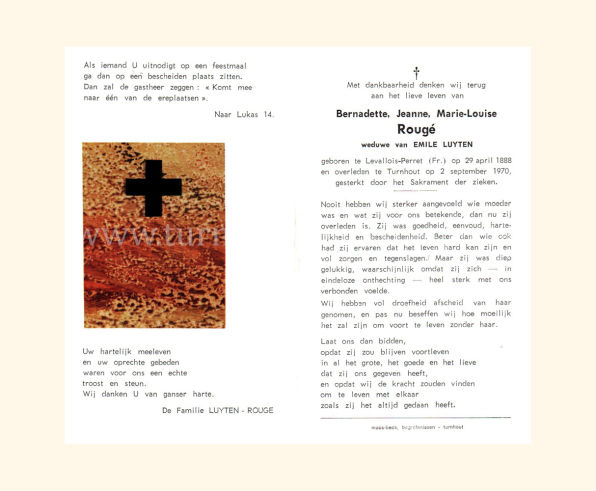 Wij willen met deze website niemand kwetsen of beledigen, het is enkel de bedoeling om genealogische informatie weer te geven.  Daarenboven hechten we veel belang aan ieders privacy.  Heeft u bezwaar tegen de vermelding van een bidprentje van één van uw familieleden die de afgelopen 50 jaar overleden zijn, stuur dan een mailtje naar info@smartsitesolutions.be.