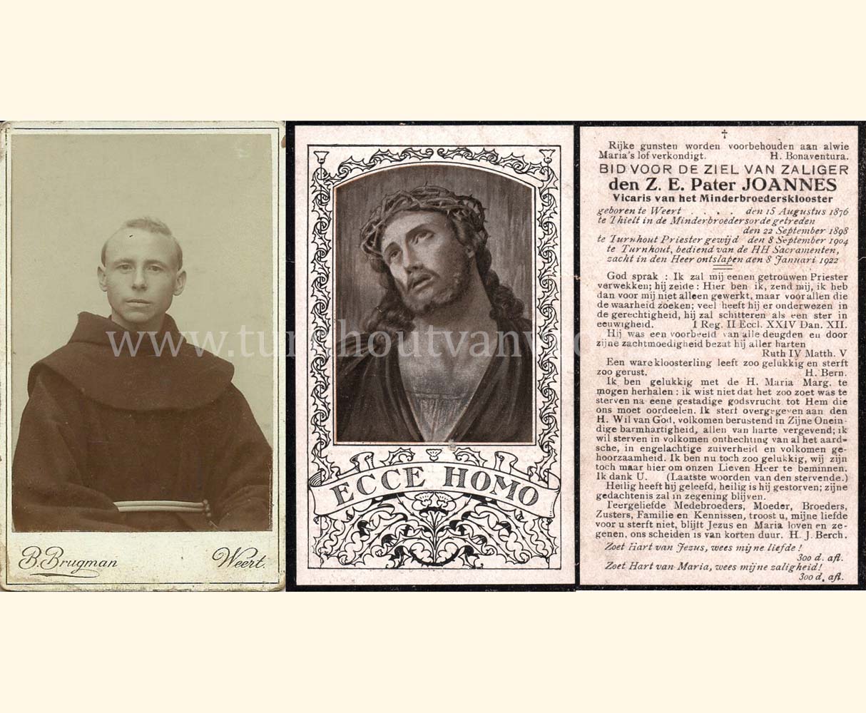 Via Paul Lammertz van Erfgoed Tungelroy uit Weert in Nederland ontving ik onlangs enkele bidprentjes uit het archief van een Pater Minderbroeder die in Turnhout overleed maar die van Weert afkomstig was. Hoog tijd dus om enkele bidprentjes uit die collectie te bespreken: