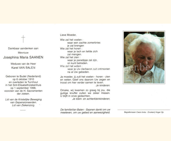 Wij willen met deze website niemand kwetsen of beledigen, het is enkel de bedoeling om genealogische informatie weer te geven.  Daarenboven hechten we veel belang aan ieders privacy.  Heeft u bezwaar tegen de vermelding van een bidprentje van één van uw familieleden die de afgelopen 50 jaar overleden zijn, stuur dan een mailtje naar info@smartsitesolutions.be.