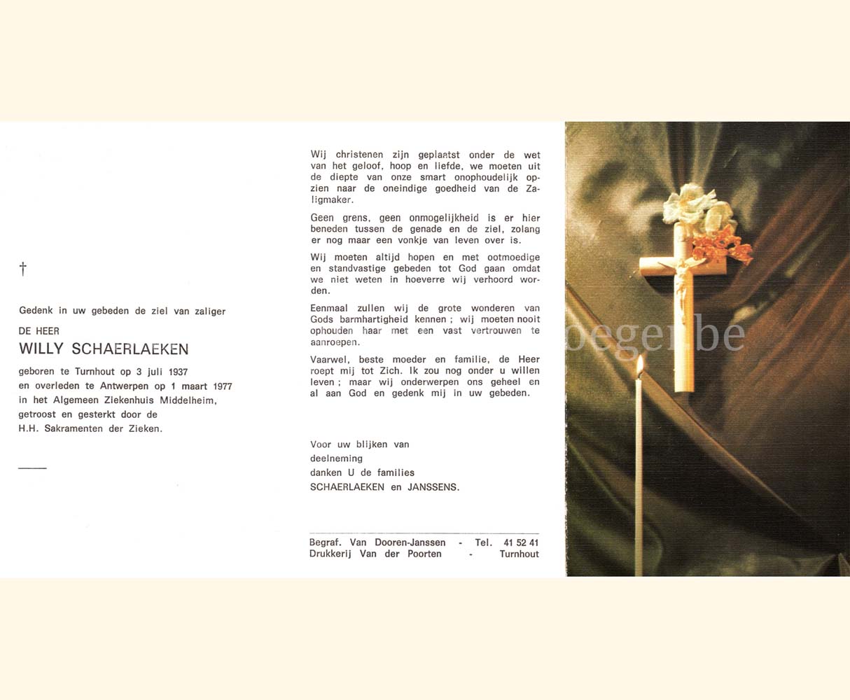 Wij willen met deze website niemand kwetsen of beledigen, het is enkel de bedoeling om genealogische informatie weer te geven.  Daarenboven hechten we veel belang aan ieders privacy.  Heeft u bezwaar tegen de vermelding van een bidprentje van één van uw familieleden die de afgelopen 50 jaar overleden zijn, stuur dan een mailtje naar info@smartsitesolutions.be.