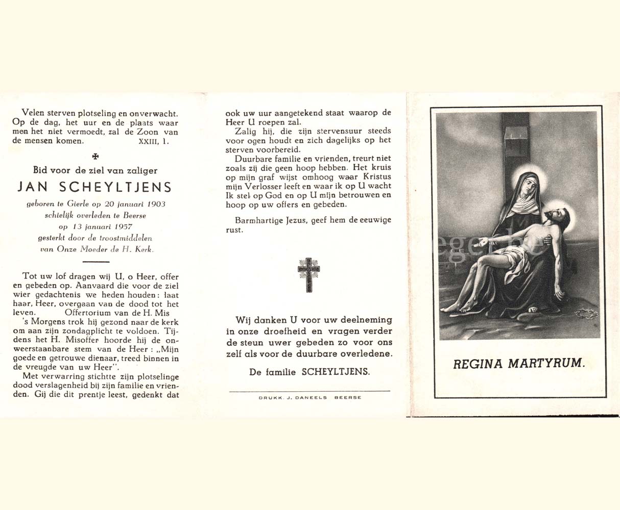 Wij willen met deze website niemand kwetsen of beledigen, het is enkel de bedoeling om genealogische informatie weer te geven.  Daarenboven hechten we veel belang aan ieders privacy.  Heeft u bezwaar tegen de vermelding van een bidprentje van één van uw familieleden die de afgelopen 50 jaar overleden zijn, stuur dan een mailtje naar info@smartsitesolutions.be.