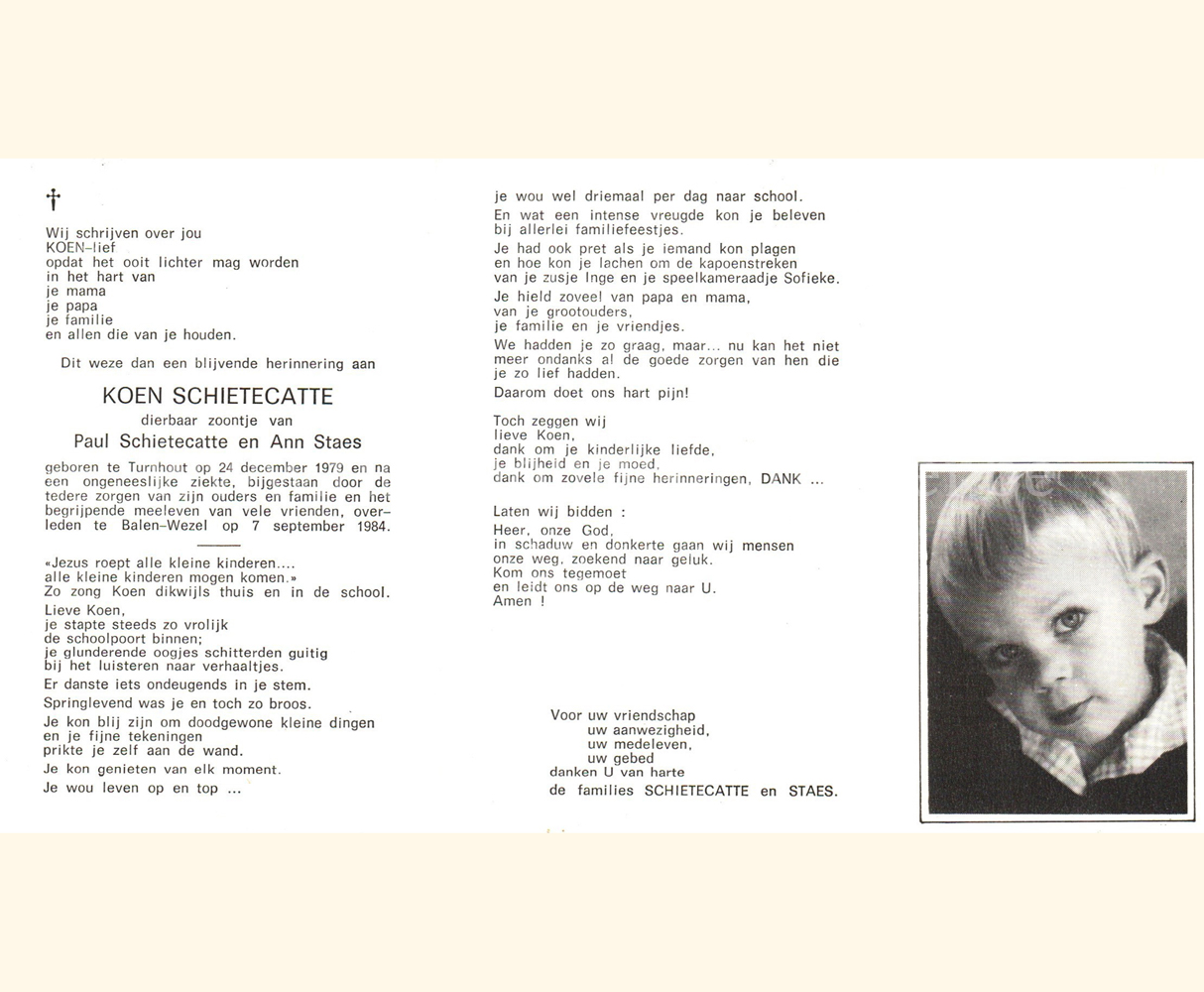 Wij willen met deze website niemand kwetsen of beledigen, het is enkel de bedoeling om genealogische informatie weer te geven.  Daarenboven hechten we veel belang aan ieders privacy.  Heeft u bezwaar tegen de vermelding van een bidprentje van één van uw familieleden die de afgelopen 50 jaar overleden zijn, stuur dan een mailtje naar info@smartsitesolutions.be.
