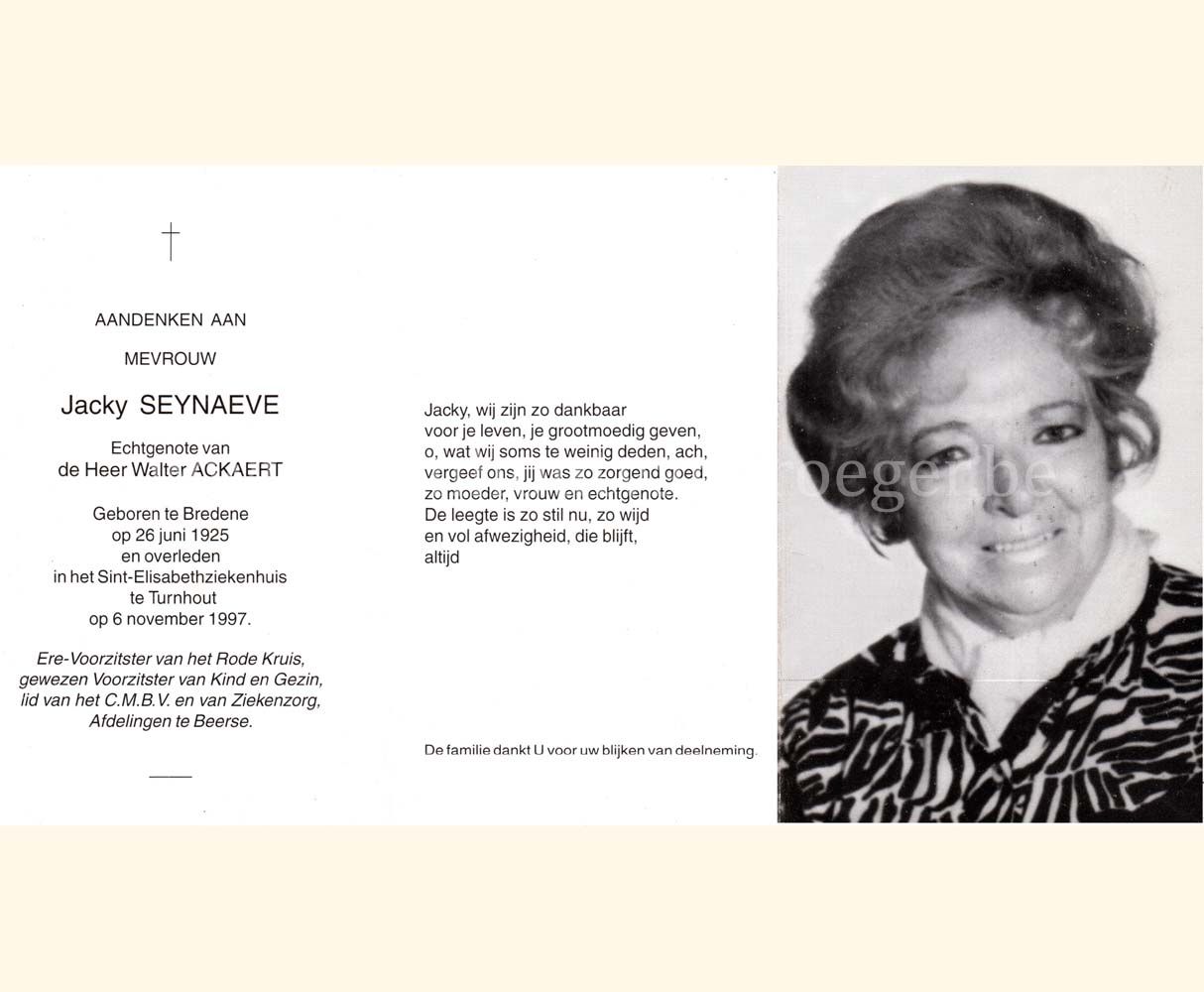 Wij willen met deze website niemand kwetsen of beledigen, het is enkel de bedoeling om genealogische informatie weer te geven.  Daarenboven hechten we veel belang aan ieders privacy.  Heeft u bezwaar tegen de vermelding van een bidprentje van één van uw familieleden die de afgelopen 50 jaar overleden zijn, stuur dan een mailtje naar info@smartsitesolutions.be.