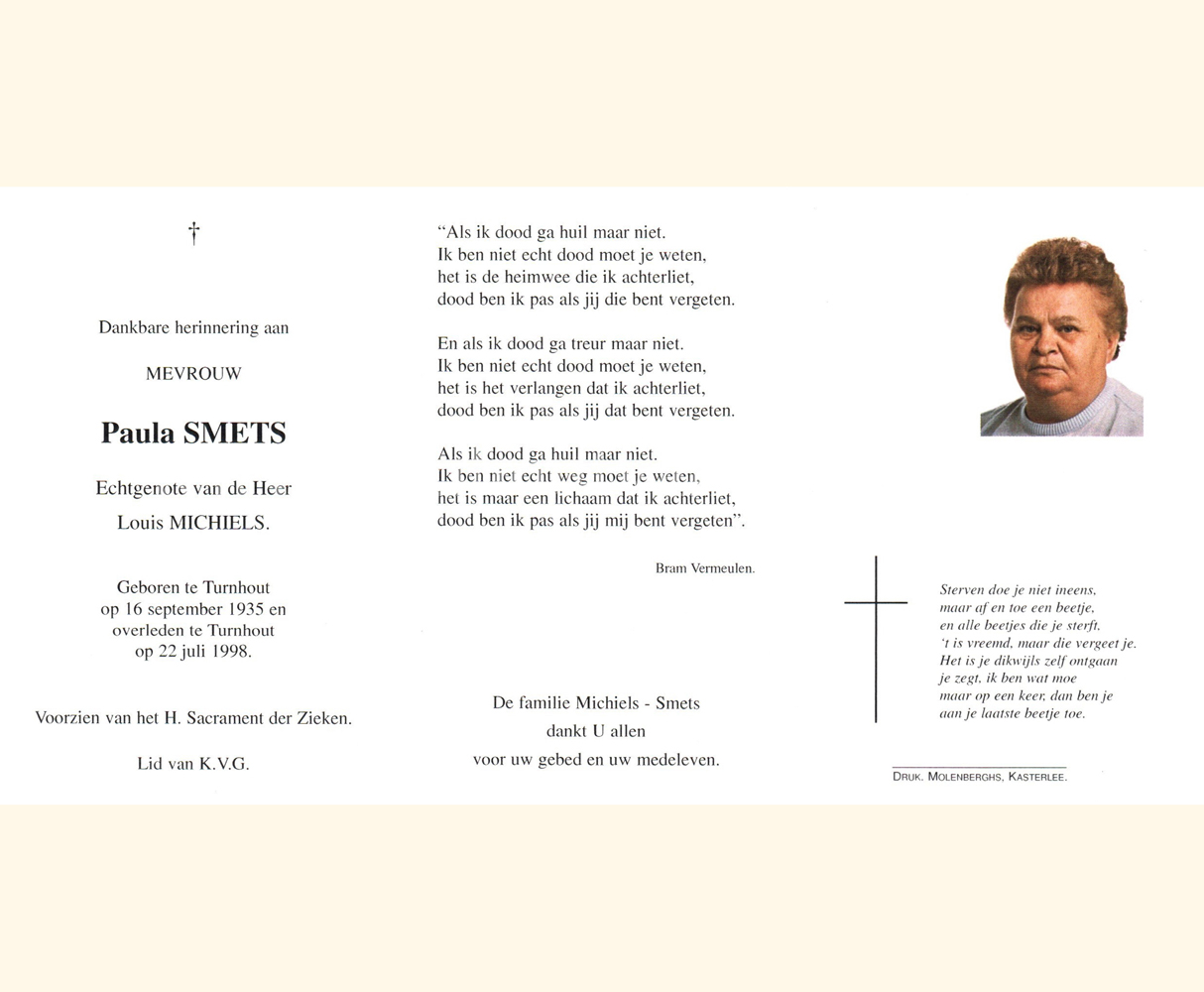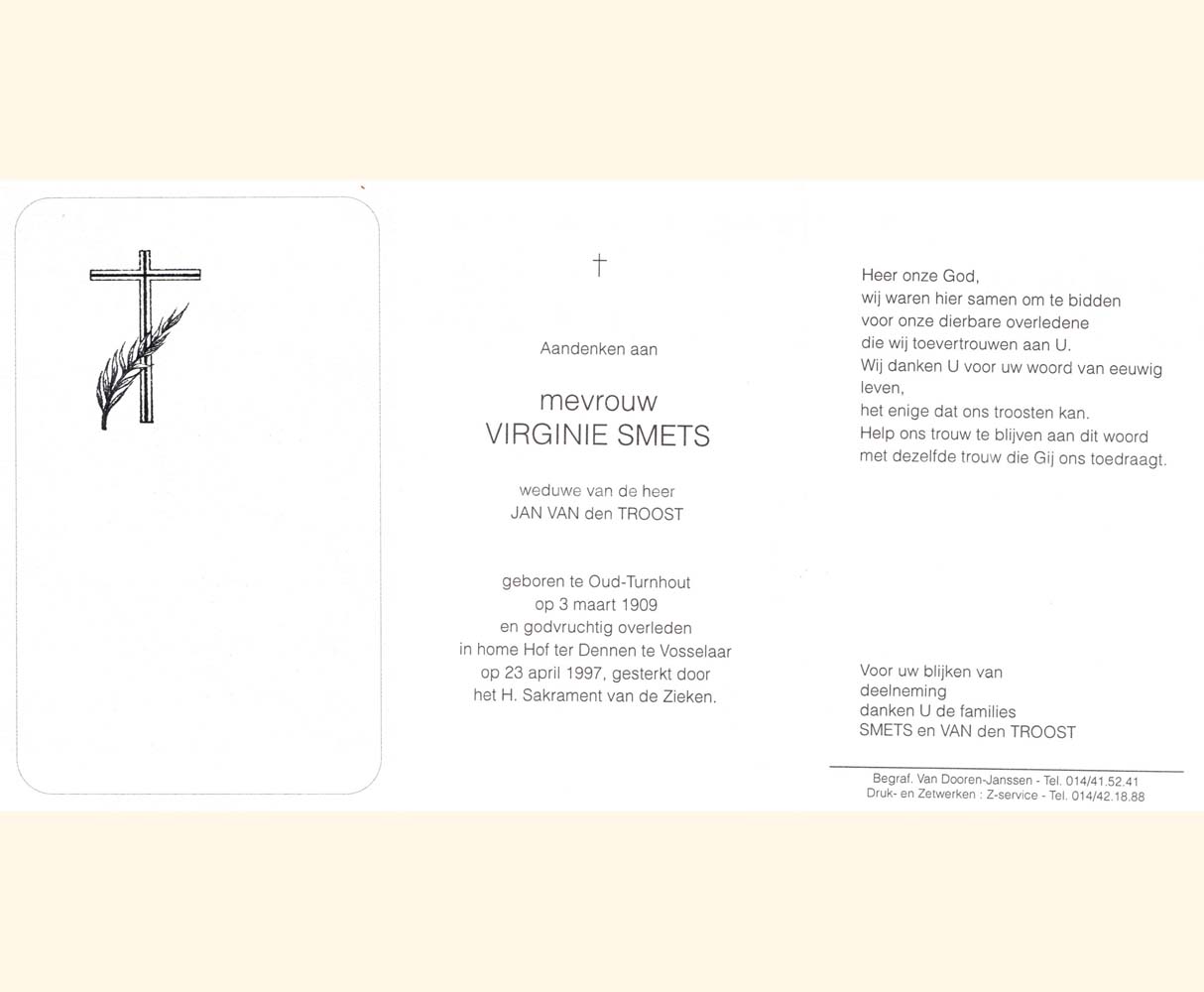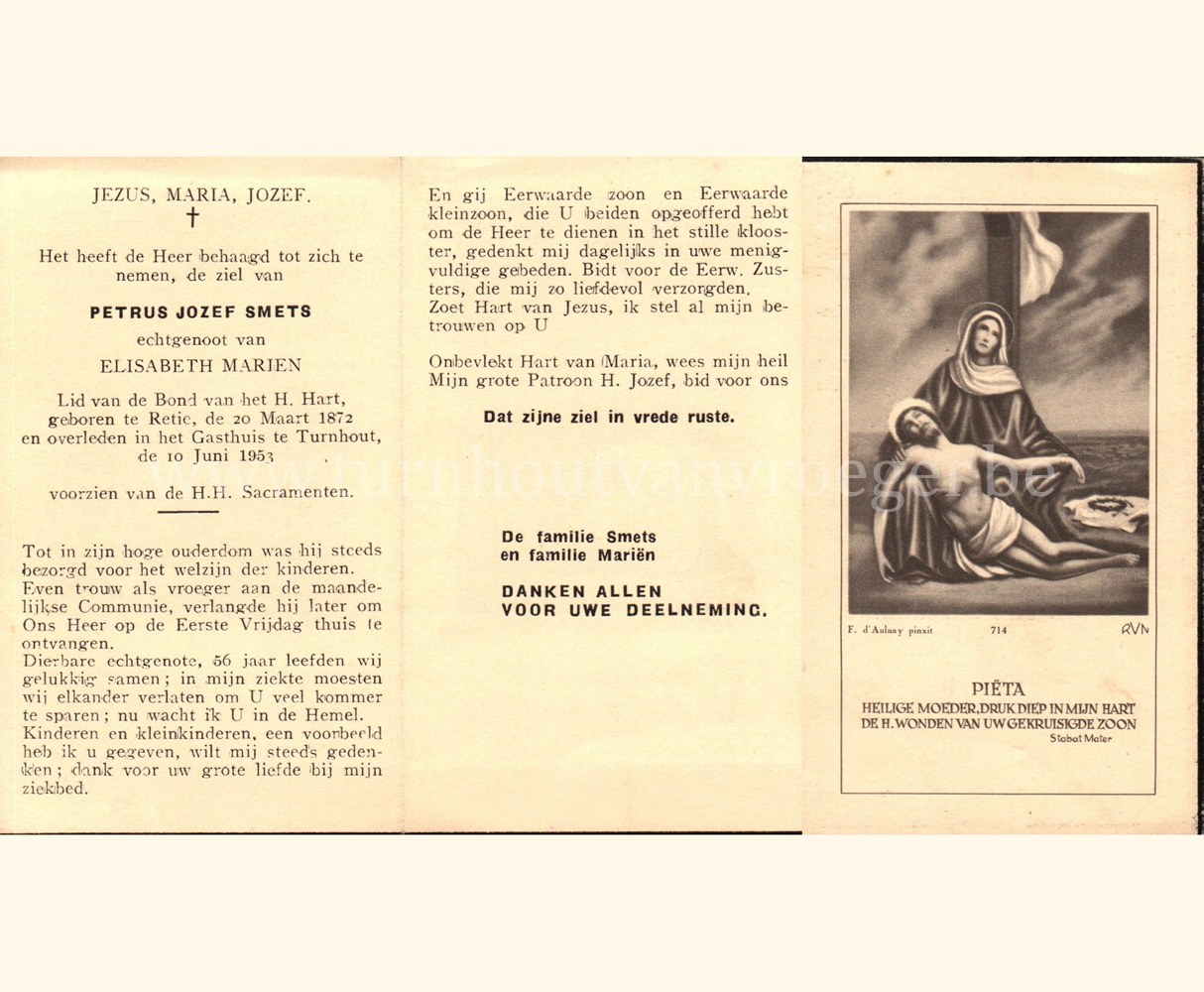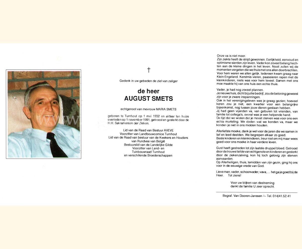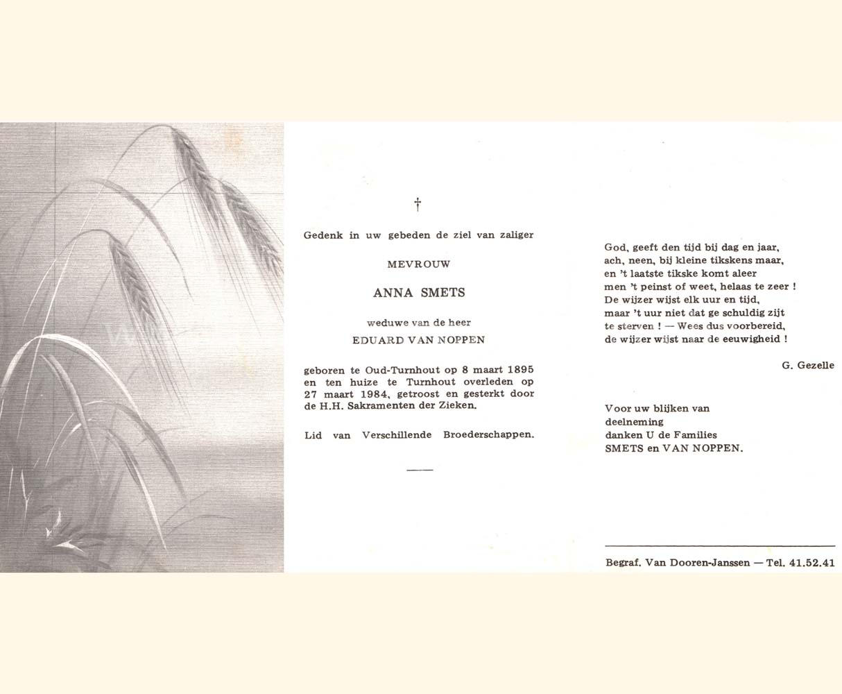 Wij willen met deze website niemand kwetsen of beledigen, het is enkel de bedoeling om genealogische informatie weer te geven. Daarenboven hechten we veel belang aan ieders privacy. Heeft u bezwaar tegen de vermelding van een bidprentje van één van uw familieleden die de afgelopen 50 jaar overleden zijn, stuur dan een mailtje naar info@smartsitesolutions.be.
