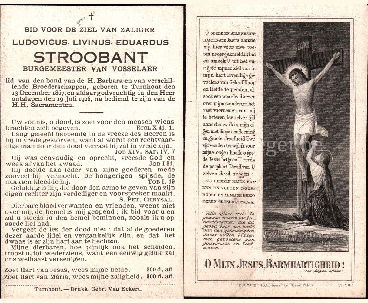 Wij willen met deze website niemand kwetsen of beledigen, het is enkel de bedoeling om genealogische informatie weer te geven.  Daarenboven hechten we veel belang aan ieders privacy.  Heeft u bezwaar tegen de vermelding van een bidprentje van één van uw familieleden die de afgelopen 50 jaar overleden zijn, stuur dan een mailtje naar info@smartsitesolutions.be.