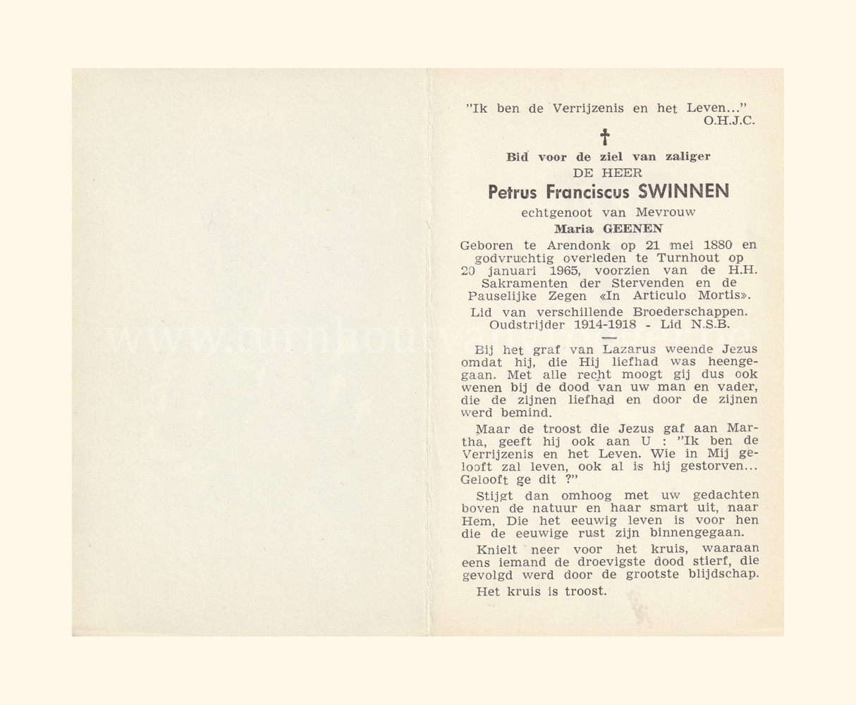 Wij willen met deze website niemand kwetsen of beledigen, het is enkel de bedoeling om genealogische informatie weer te geven.  Daarenboven hechten we veel belang aan ieders privacy.  Heeft u bezwaar tegen de vermelding van een bidprentje van één van uw familieleden die de afgelopen 50 jaar overleden zijn, stuur dan een mailtje naar info@smartsitesolutions.be.