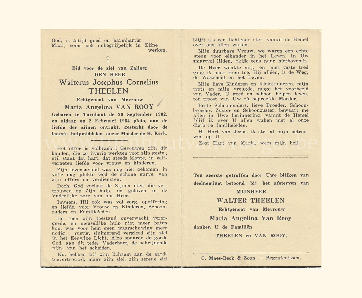Wij willen met deze website niemand kwetsen of beledigen, het is enkel de bedoeling om genealogische informatie weer te geven.  Daarenboven hechten we veel belang aan ieders privacy.  Heeft u bezwaar tegen de vermelding van een bidprentje van één van uw familieleden die de afgelopen 50 jaar overleden zijn, stuur dan een mailtje naar info@smartsitesolutions.be.