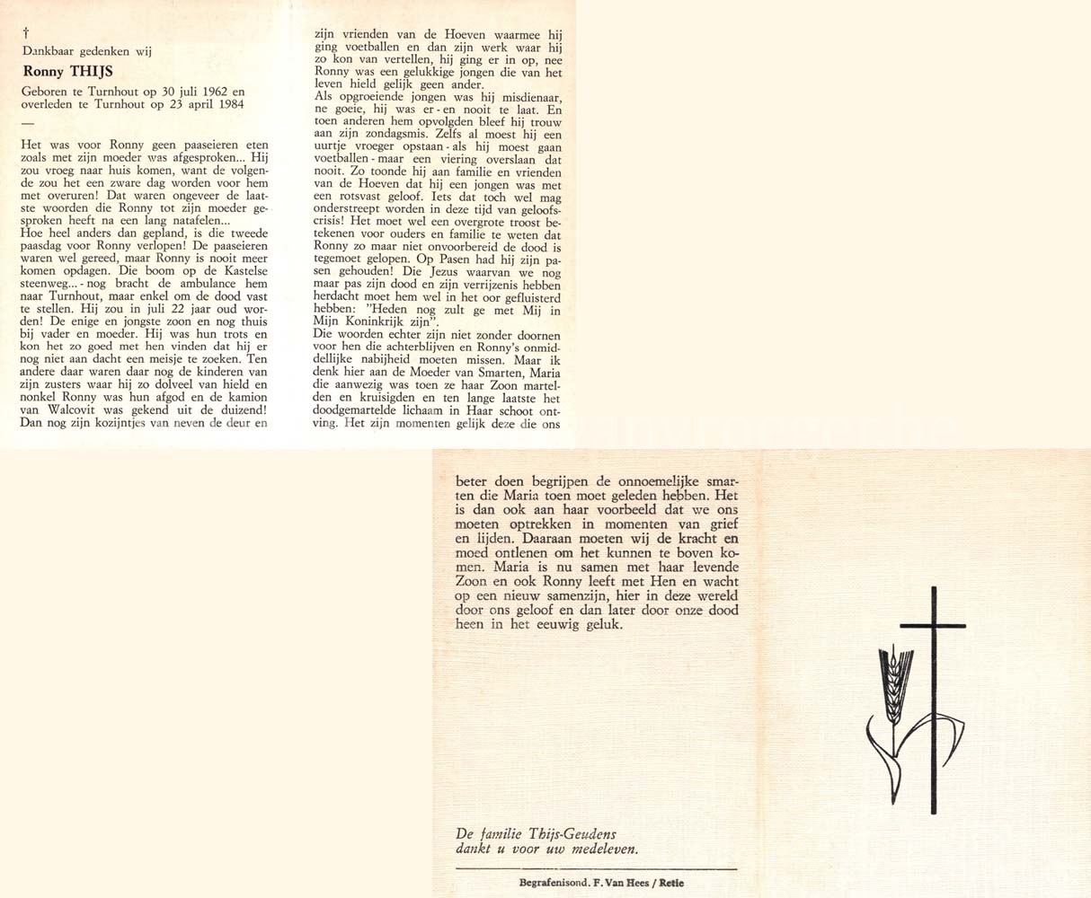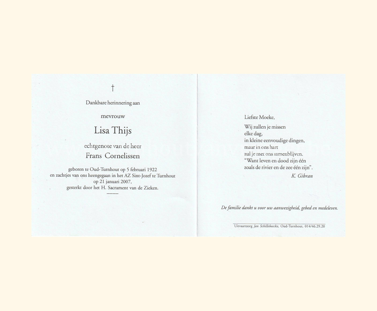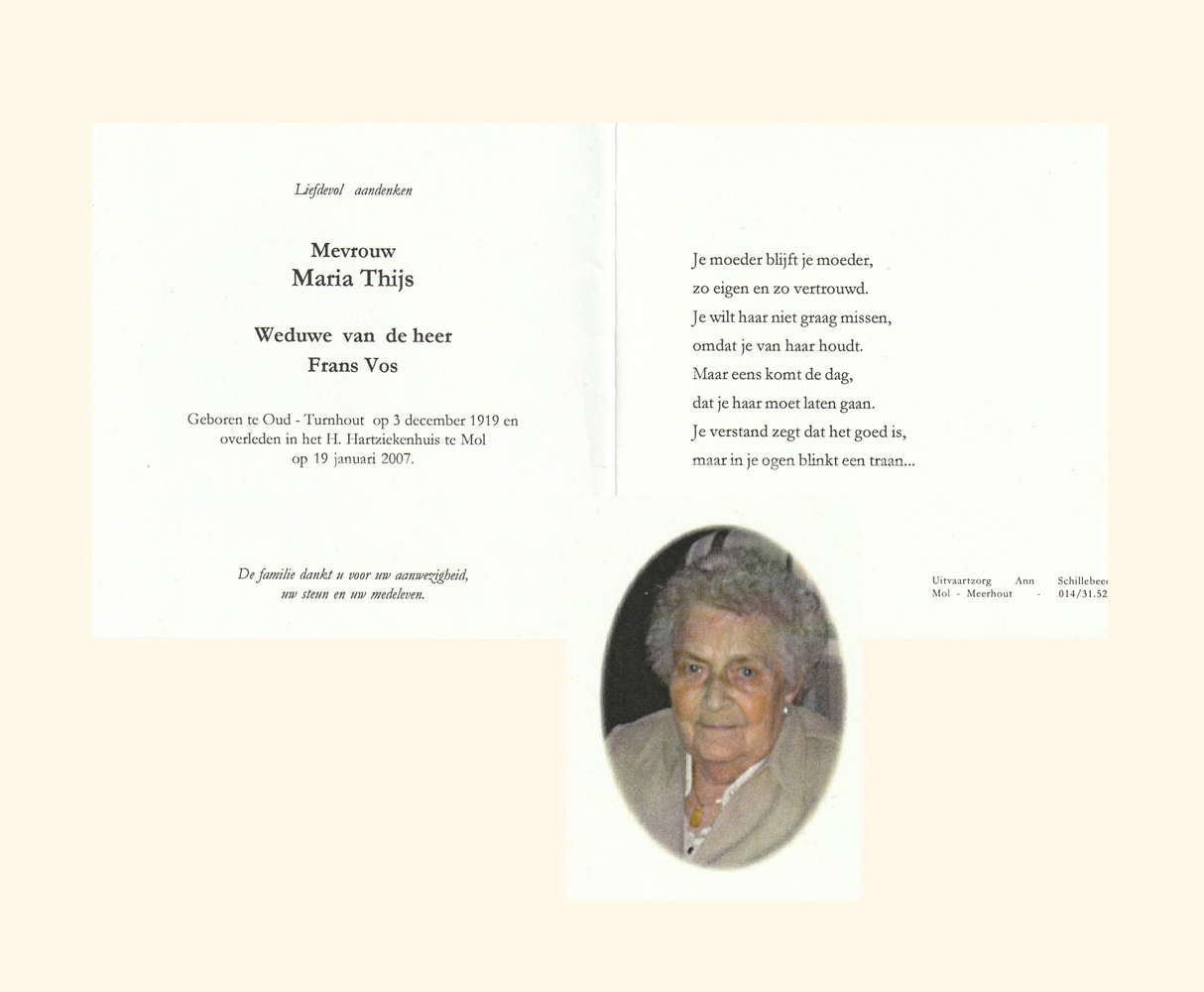 Wij willen met deze website niemand kwetsen of beledigen, het is enkel de bedoeling om genealogische informatie weer te geven.  Daarenboven hechten we veel belang aan ieders privacy.  Heeft u bezwaar tegen de vermelding van een bidprentje van één van uw familieleden die de afgelopen 50 jaar overleden zijn, stuur dan een mailtje naar info@smartsitesolutions.be.
