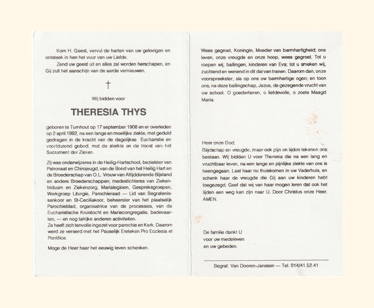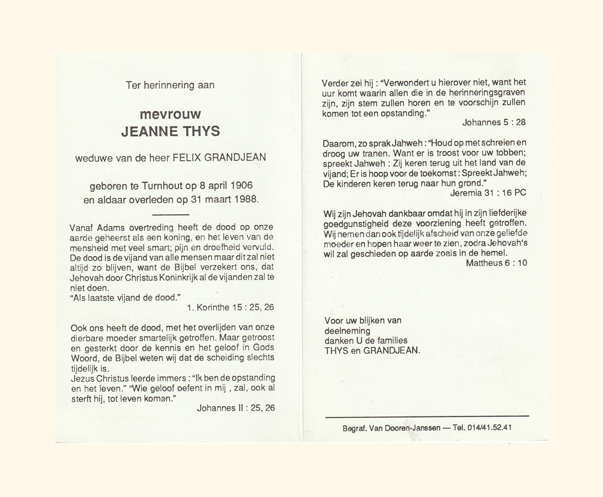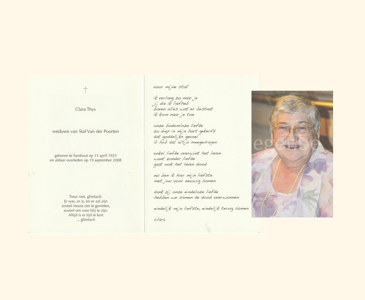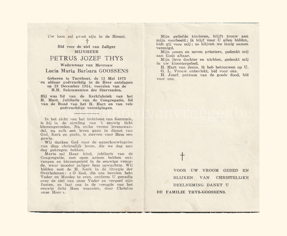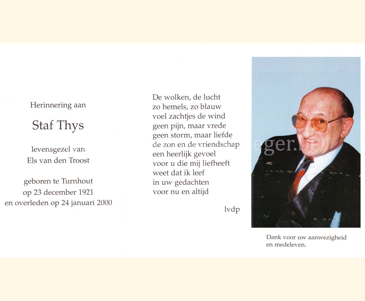 Wij willen met deze website niemand kwetsen of beledigen, het is enkel de bedoeling om genealogische informatie weer te geven.  Daarenboven hechten we veel belang aan ieders privacy.  Heeft u bezwaar tegen de vermelding van een bidprentje van één van uw familieleden die de afgelopen 50 jaar overleden zijn, stuur dan een mailtje naar info@smartsitesolutions.be.