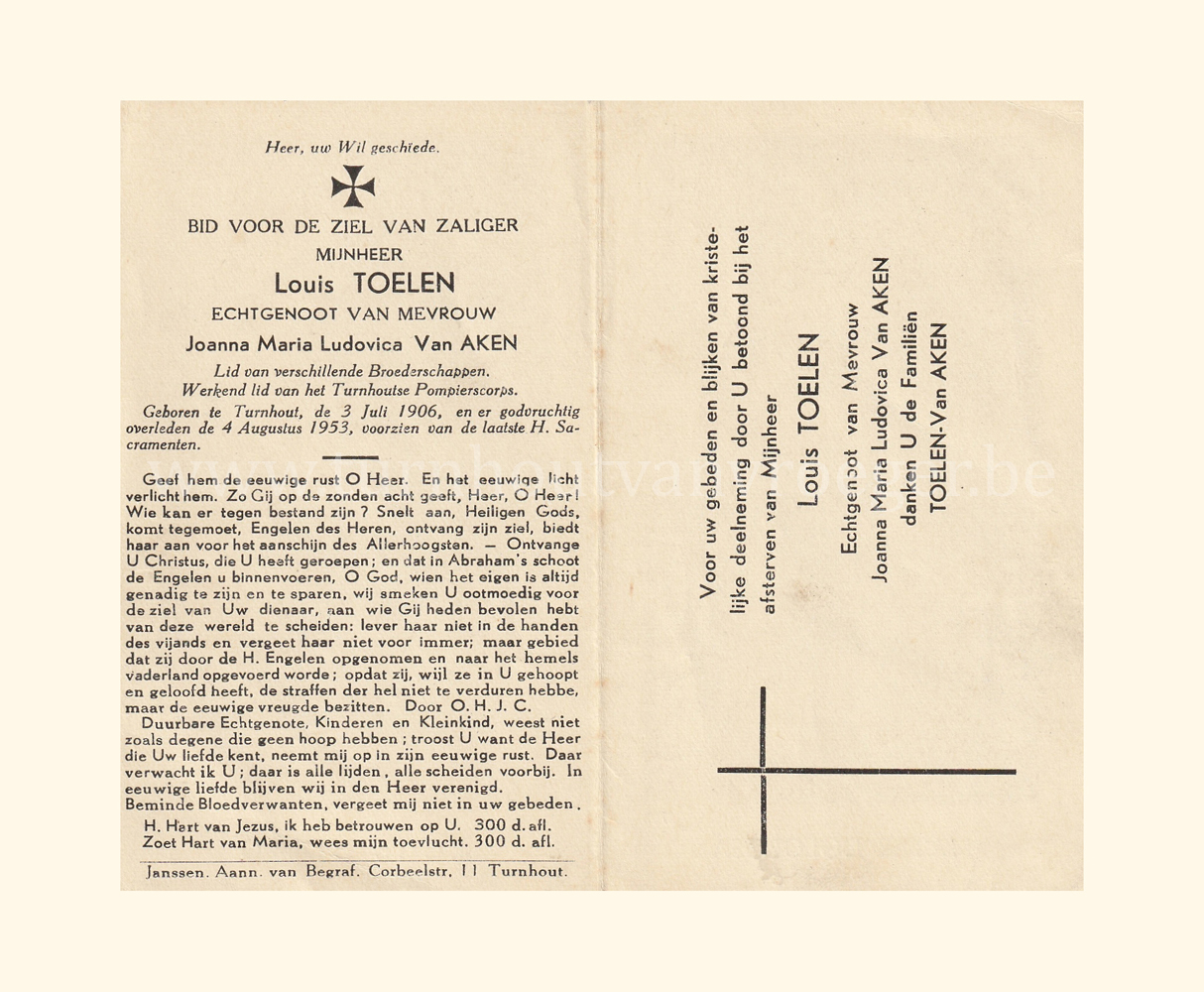 Wij willen met deze website niemand kwetsen of beledigen, het is enkel de bedoeling om genealogische informatie weer te geven.  Daarenboven hechten we veel belang aan ieders privacy.  Heeft u bezwaar tegen de vermelding van een bidprentje van één van uw familieleden die de afgelopen 50 jaar overleden zijn, stuur dan een mailtje naar info@smartsitesolutions.be.