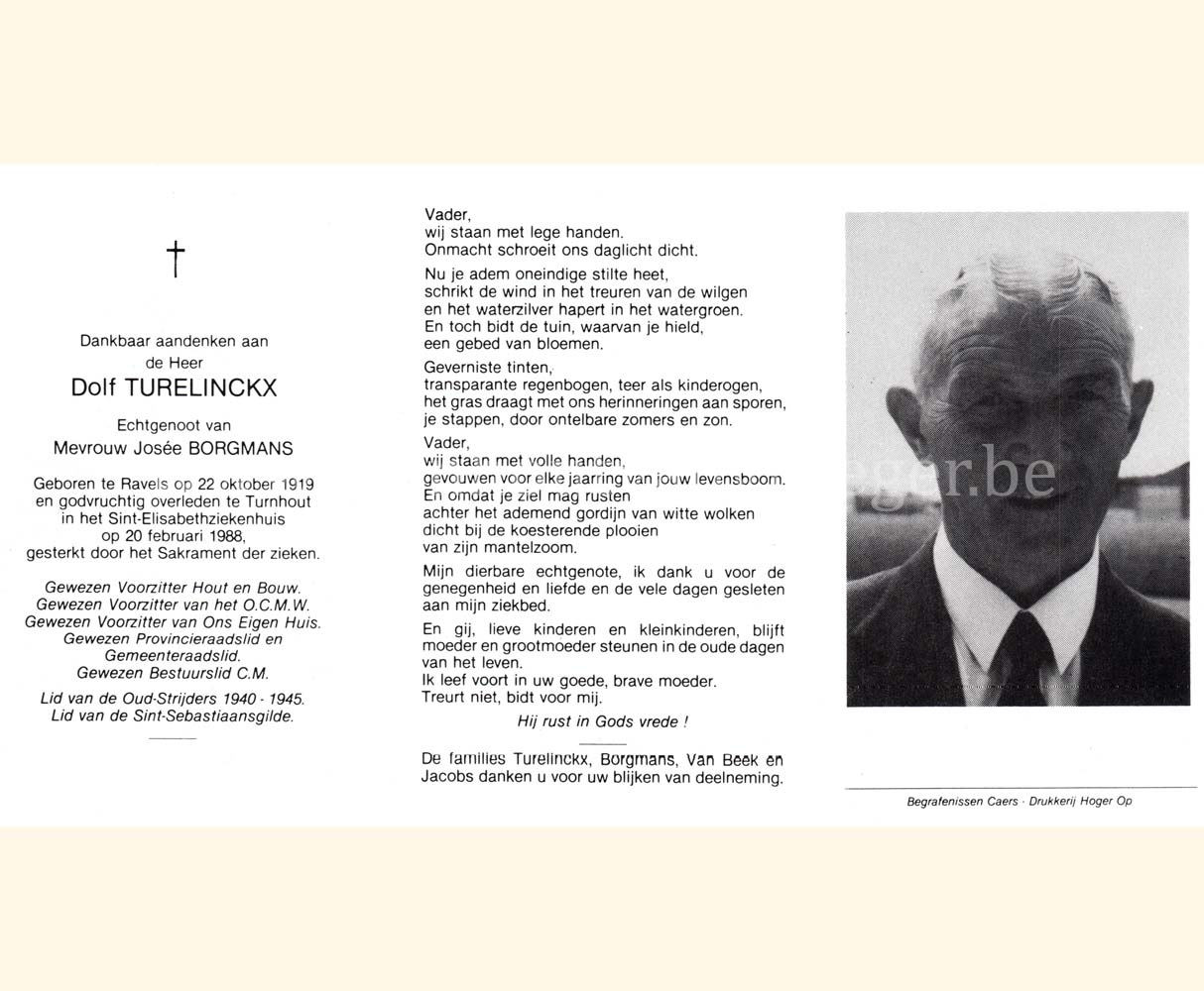 Wij willen met deze website niemand kwetsen of beledigen, het is enkel de bedoeling om genealogische informatie weer te geven.  Daarenboven hechten we veel belang aan ieders privacy.  Heeft u bezwaar tegen de vermelding van een bidprentje van één van uw familieleden die de afgelopen 50 jaar overleden zijn, stuur dan een mailtje naar info@smartsitesolutions.be.