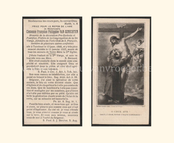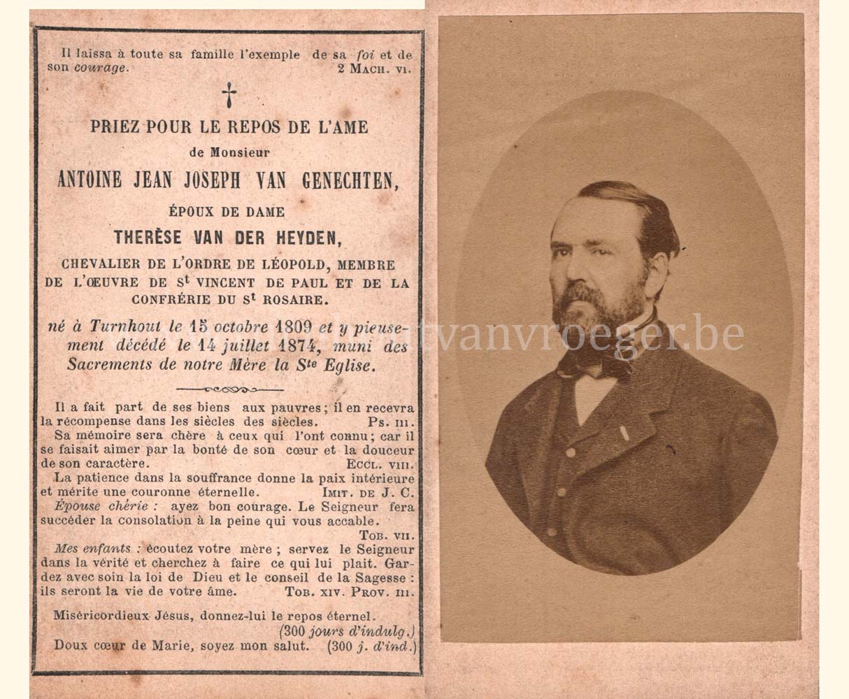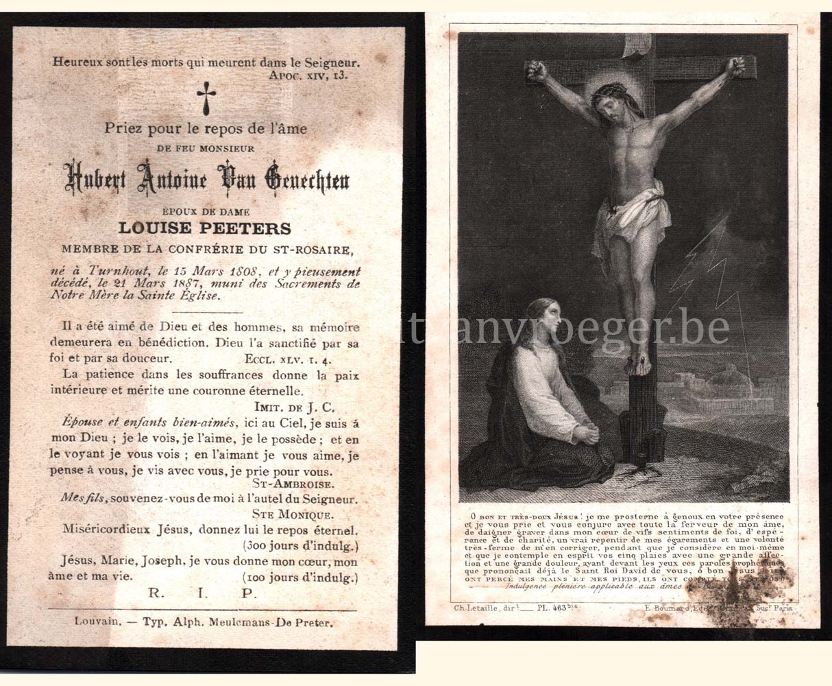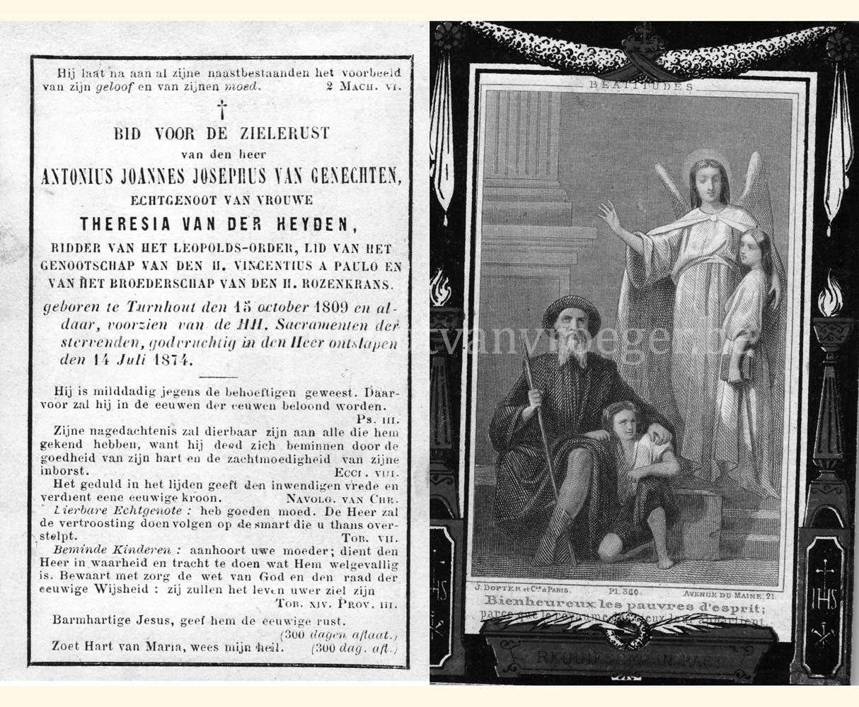 Een bidprentje uit 1855 dit keer, gedrukt bij Glénisson en Van Genechten van de stamvader van de familie Van Genechten: