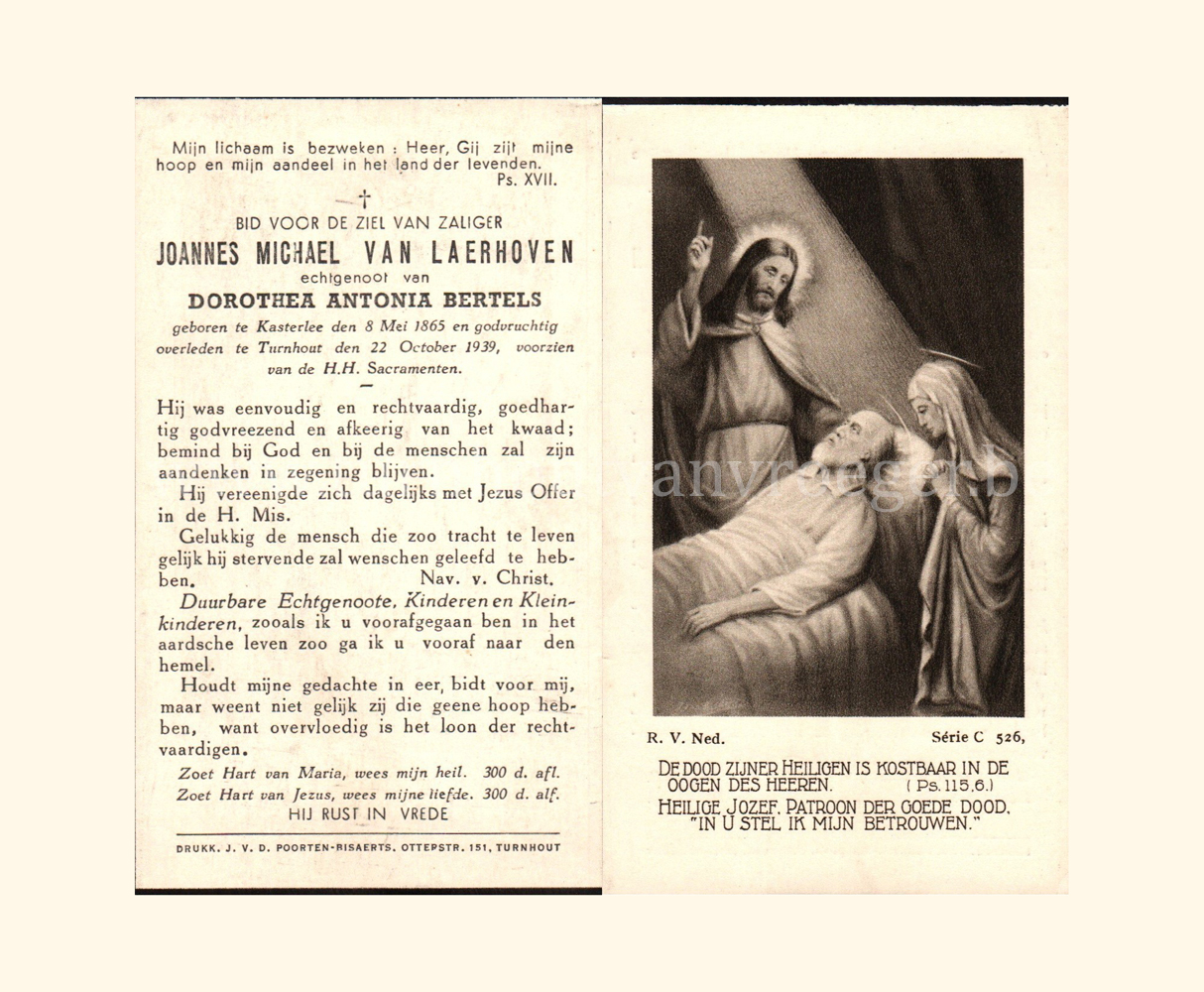 Een bidprentje uit 1944 van een oorlogsslachtoffer uit Turnhout