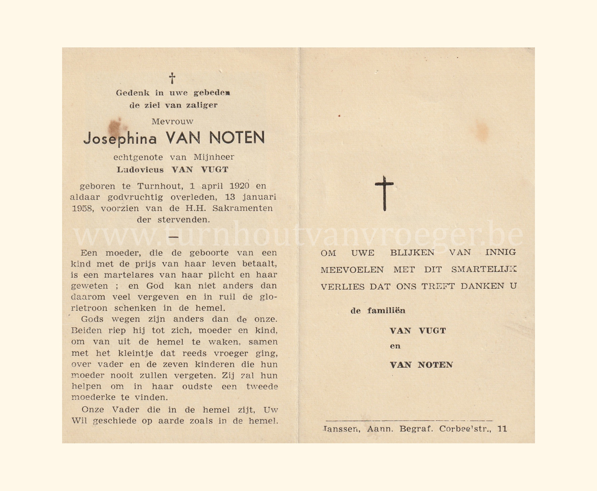 Wij willen met deze website niemand kwetsen of beledigen, het is enkel de bedoeling om genealogische informatie weer te geven.  Daarenboven hechten we veel belang aan ieders privacy.  Heeft u bezwaar tegen de vermelding van een bidprentje van één van uw familieleden die de afgelopen 50 jaar overleden zijn, stuur dan een mailtje naar info@smartsitesolutions.be.