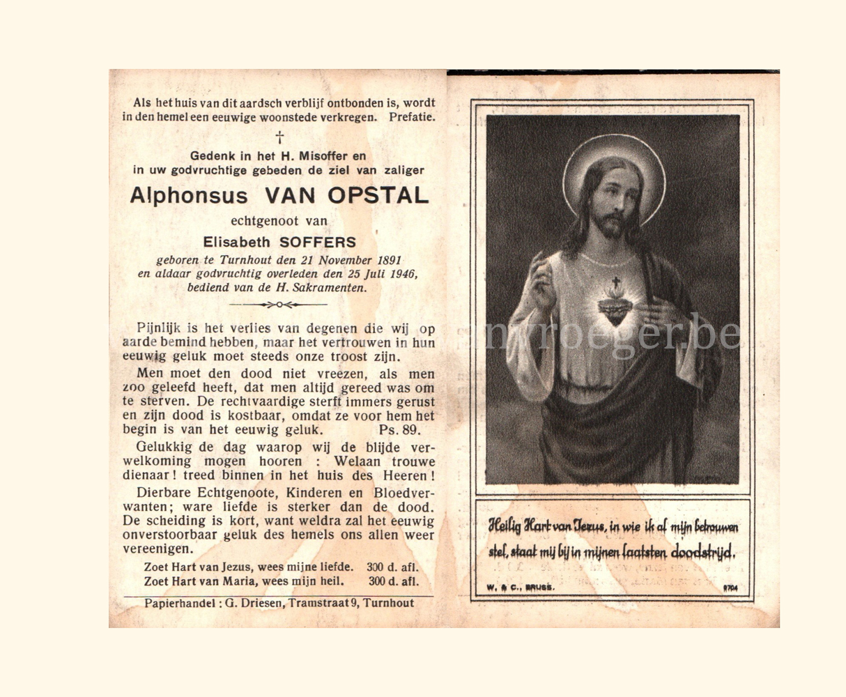 Wij willen met deze website niemand kwetsen of beledigen, het is enkel de bedoeling om genealogische informatie weer te geven.  Daarenboven hechten we veel belang aan ieders privacy.  Heeft u bezwaar tegen de vermelding van een bidprentje van één van uw familieleden die de afgelopen 50 jaar overleden zijn, stuur dan een mailtje naar info@smartsitesolutions.be.