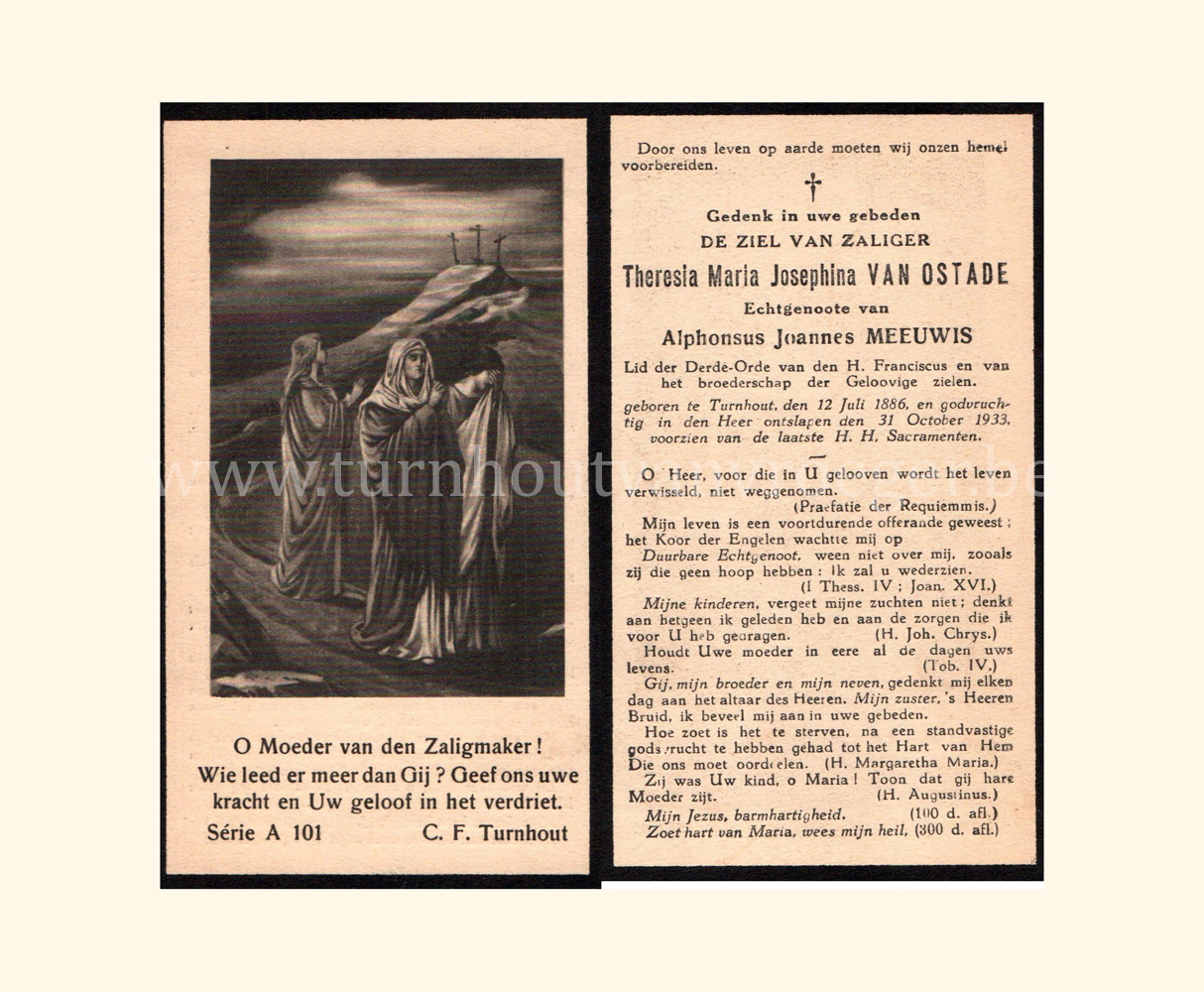 Wij willen met deze website niemand kwetsen of beledigen, het is enkel de bedoeling om genealogische informatie weer te geven.  Daarenboven hechten we veel belang aan ieders privacy.  Heeft u bezwaar tegen de vermelding van een bidprentje van één van uw familieleden die de afgelopen 50 jaar overleden zijn, stuur dan een mailtje naar info@smartsitesolutions.be.